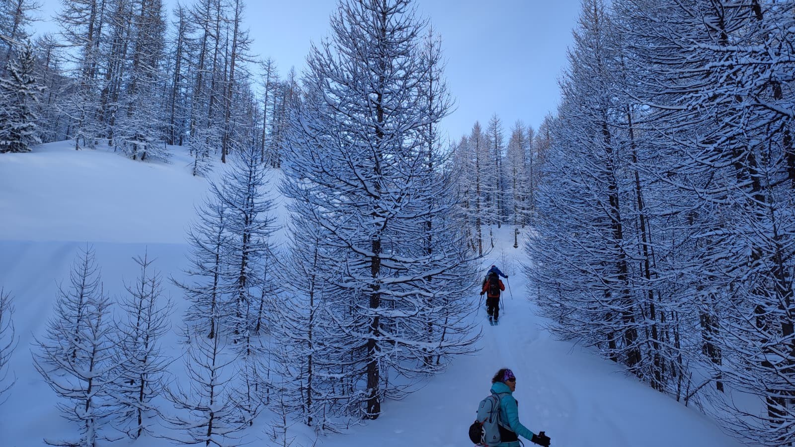 Conditions pour le ski : en deux jours il a neigé une trentaine de centimètres à 2 000 m, faiblement ventée en forêt.