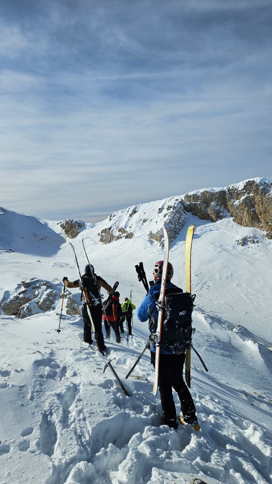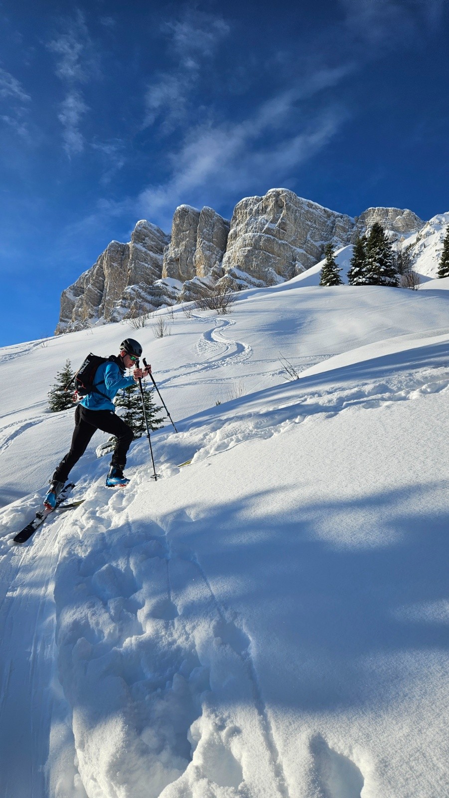 Également bien content de revenir dans le coin. C'est sur la piste "le mur" que j'ai fait mes premiers pas en ski de rando, direct dans les conversions🫠 (accompagné de mes pleurs de désespoir😅). Ça n'était pas loin de me dégoûter mais il faut croire que ça a marché. Pour être bien sûr mon père m'avait emmené dans le mur d'en face sous le télésiège pour ma deuxième sortie😂. Une fois que j'avais un peu plus accroché on a fait le Pas de la Ville à chaque début de saison avec de plus grosses quantités de neige "à l'époque" qui permettaient de descendre dans les sapins sans finir sur le border. Bref de beaux souvenirs sont remontés aujourd'hui😝.