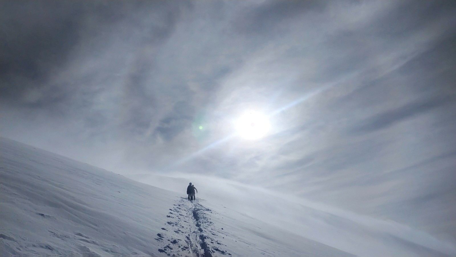 Après cette nouvelle réussite je recolle mes peaux pour remonter au Pas de la Ville, j'ai prolongé un peu sous l'antécime de Pierre Blanche pour rejoindre Lucie et Ludo. Aymeric et maman eux ont rebasculé au Pas de la Ville direction parking juste avant que j'y passe. Une fois Lucie et Ludo rejoints le mauvais temps s'est bien mis en place juste au-dessus de notre tête. On n'a pas traîné à redescendre le petit couloir ouest toujours aussi bon puis à remonter au Pas de la Ville pour rentrer.