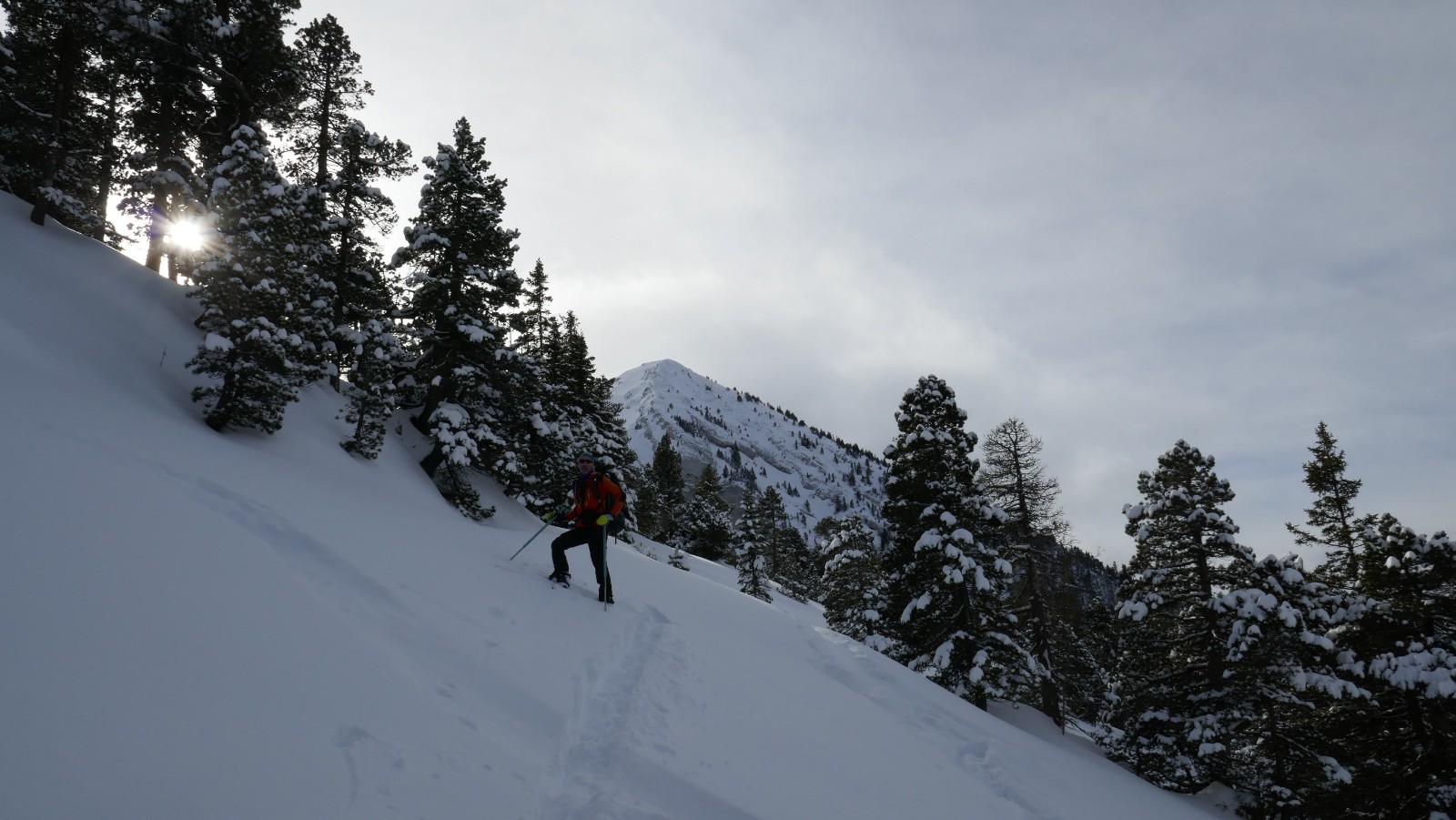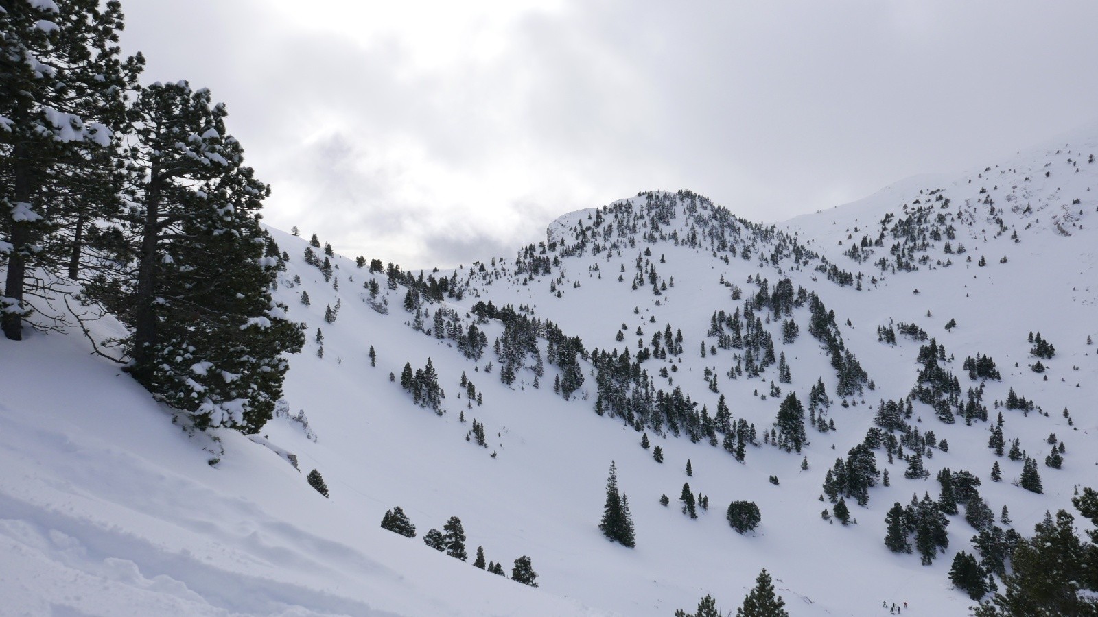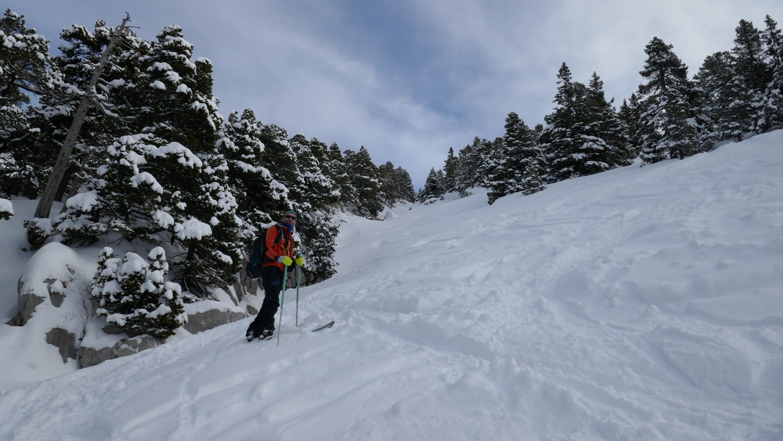 Côté condition, la tête de chaudières parait bien soufflée (comme d'habitude). La "bosse" devant ce sommet déjà tracée dans les arbres a l'air sympa.