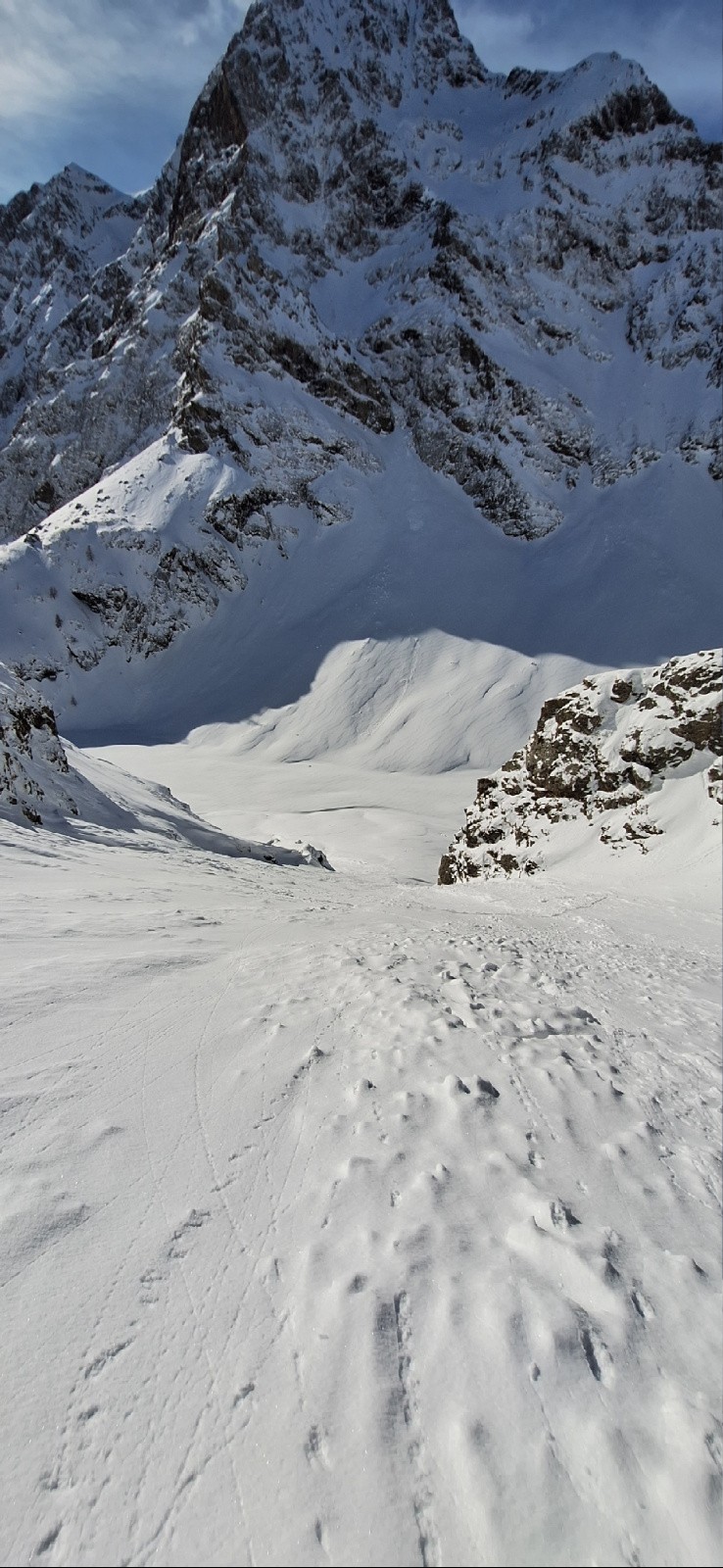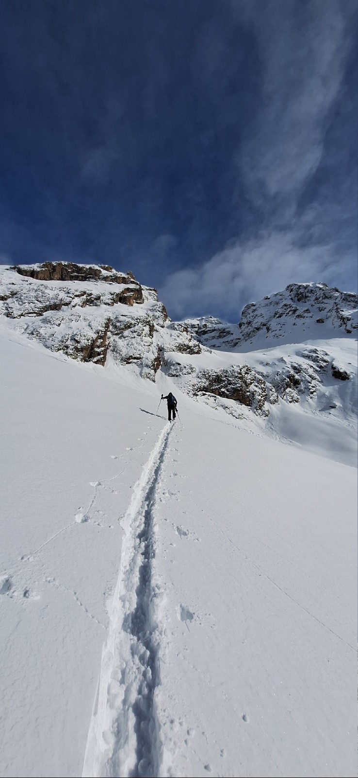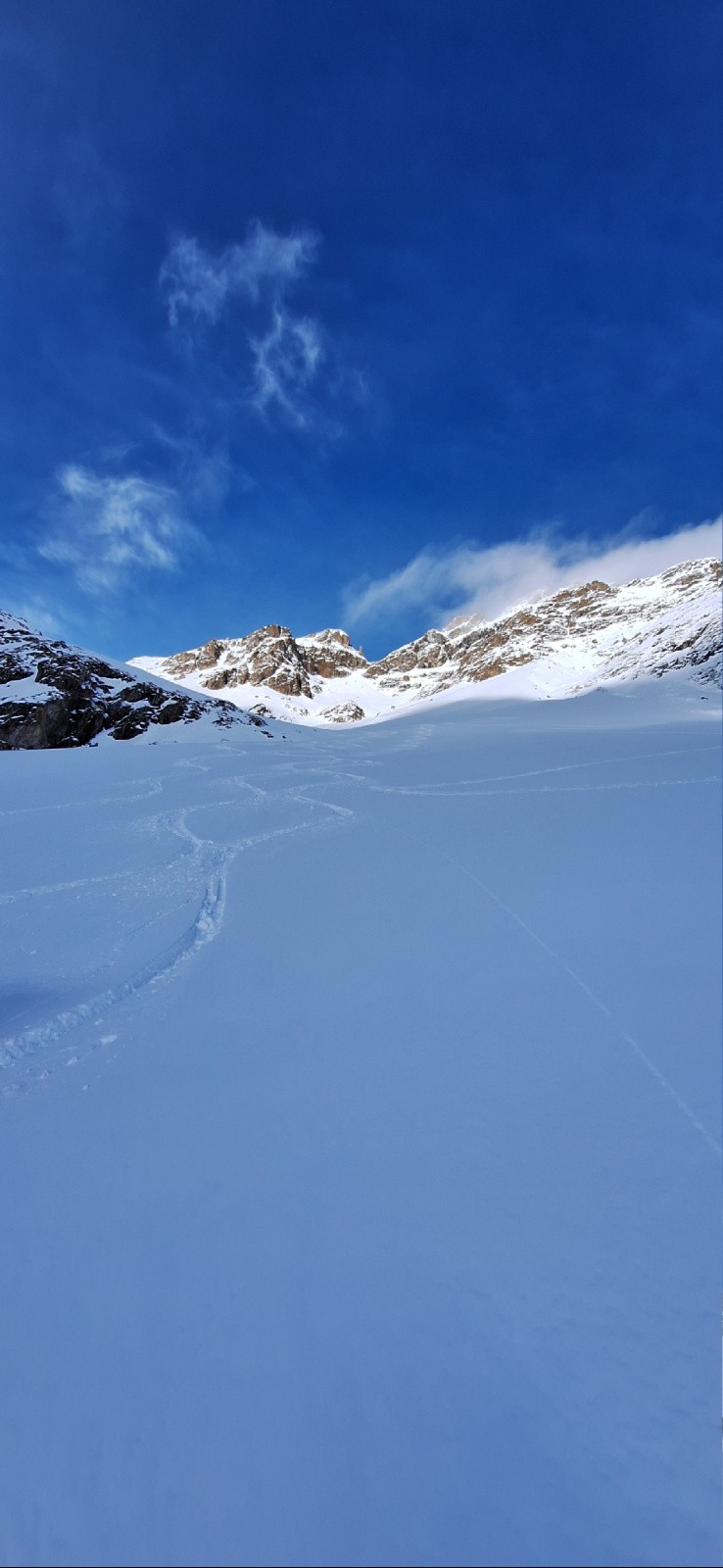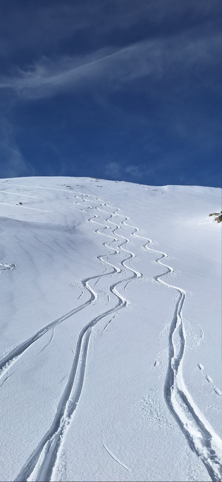 Conditions pour le ski : Neige fraîche sur toute la sortie / plus lourde en fin d'après midi avec l'ensoleillement mais très bon ski jusqu'au dernier goulet (descente) après un peu ski combat mais retour ski aux pieds