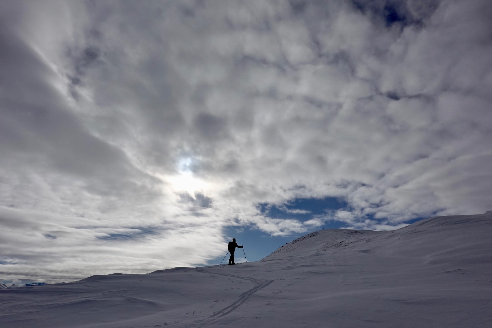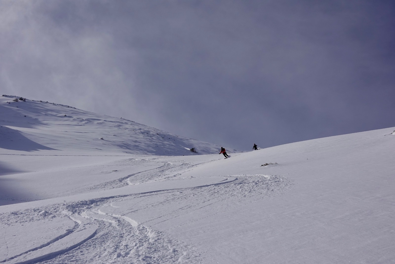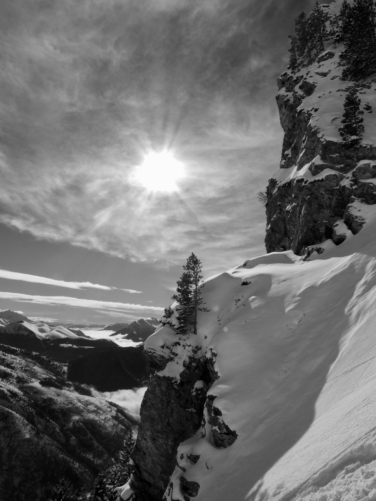 Conditions nivo et activité avalancheuse : rien vu ni entendu ce jour, rares fissures peu profondes lors des conversions, sluff dans le couloir SE