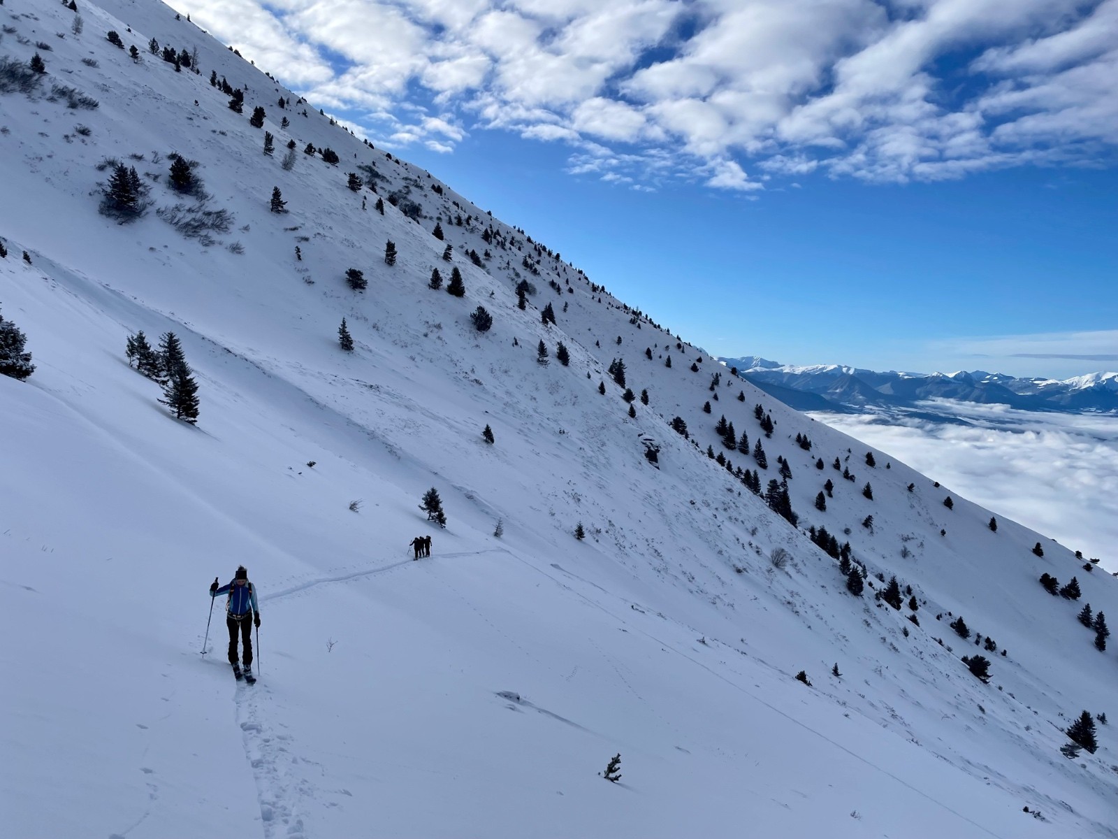 "Attention ici la neige est plus dure, pas facile en traversée !