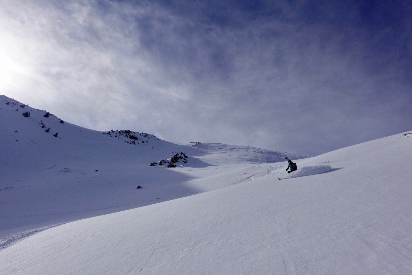 - faces W : nombreuses zones avec cailloux apparents, les combes sont bien garnies de poudre et bonnes à skier
