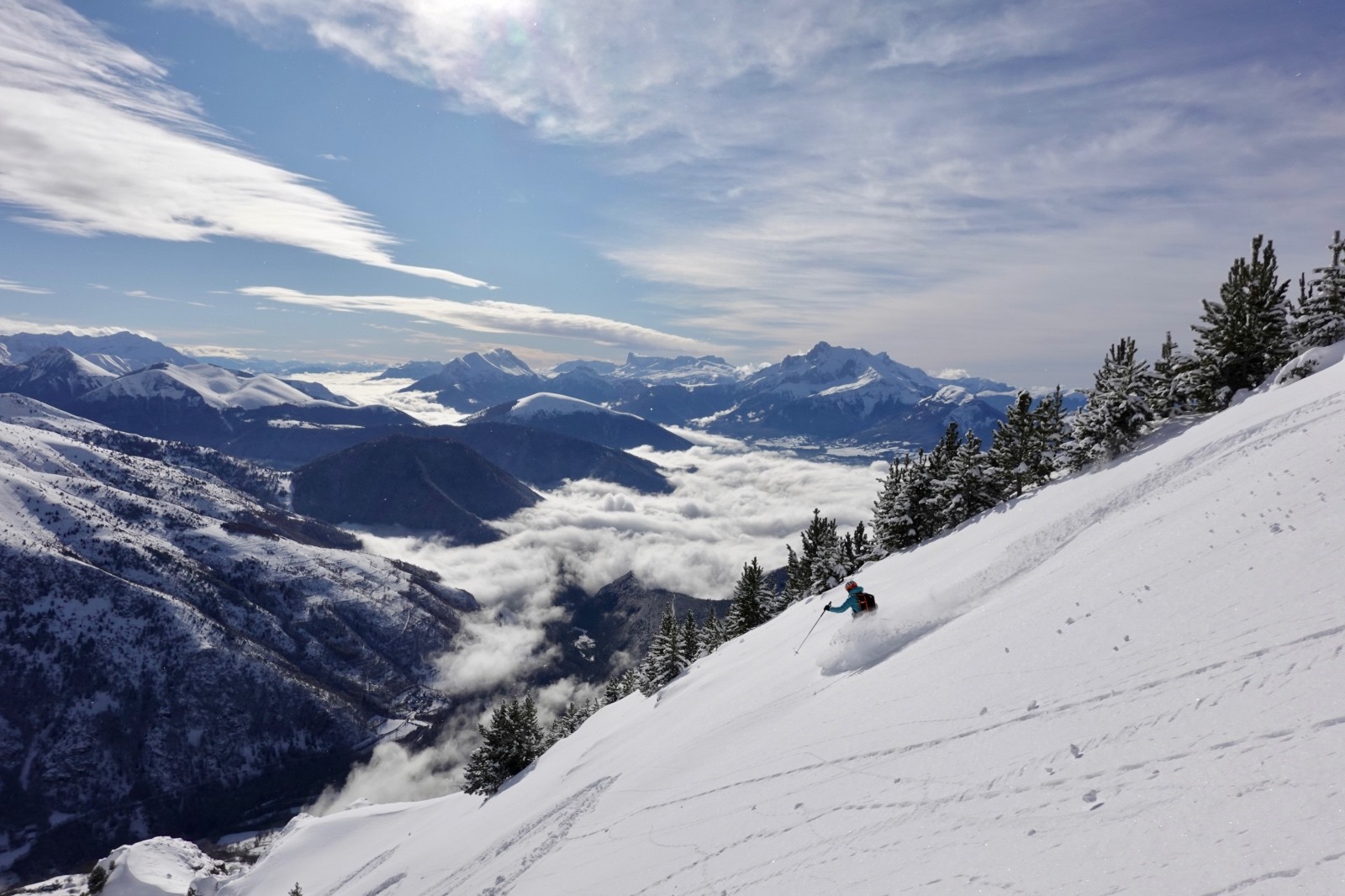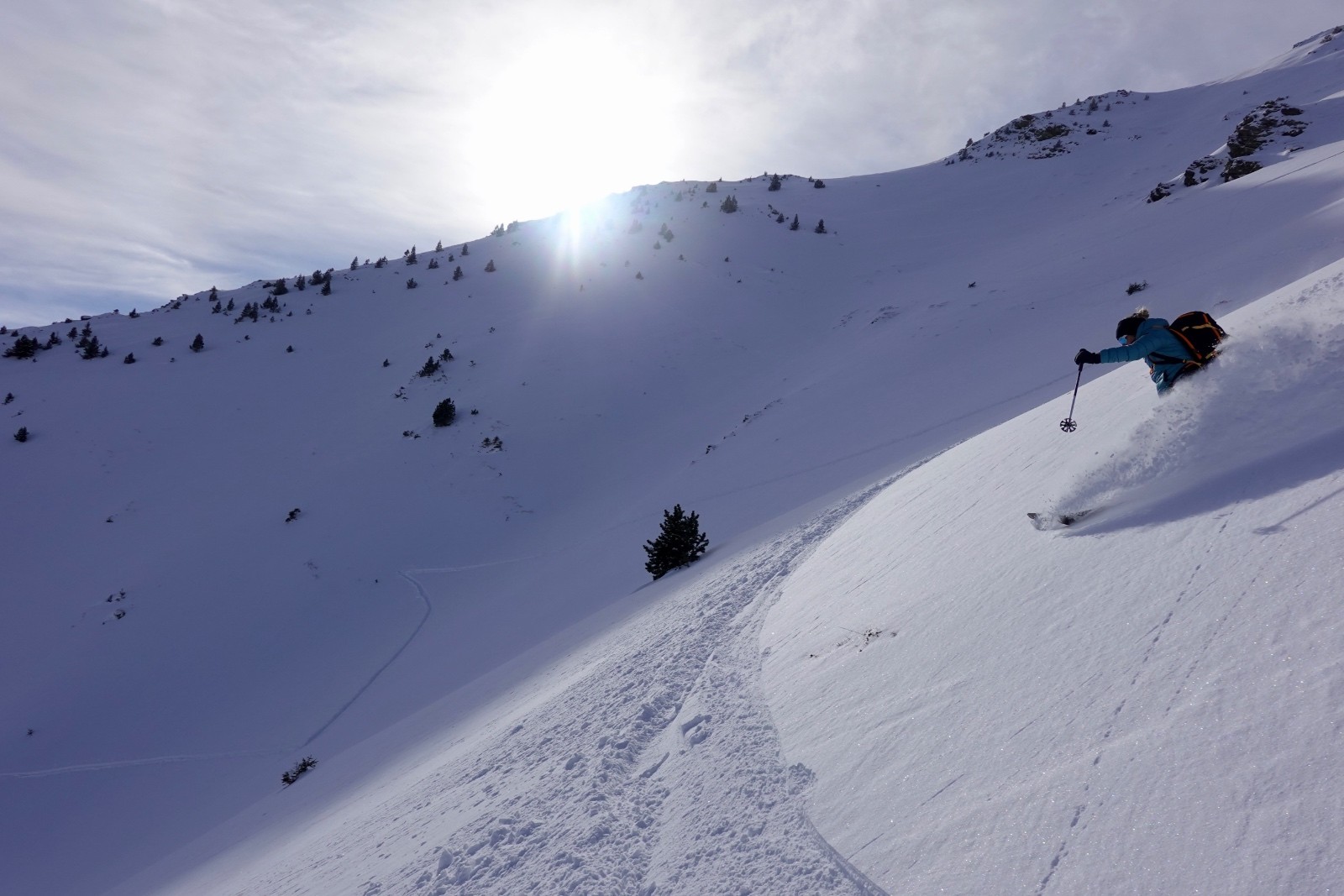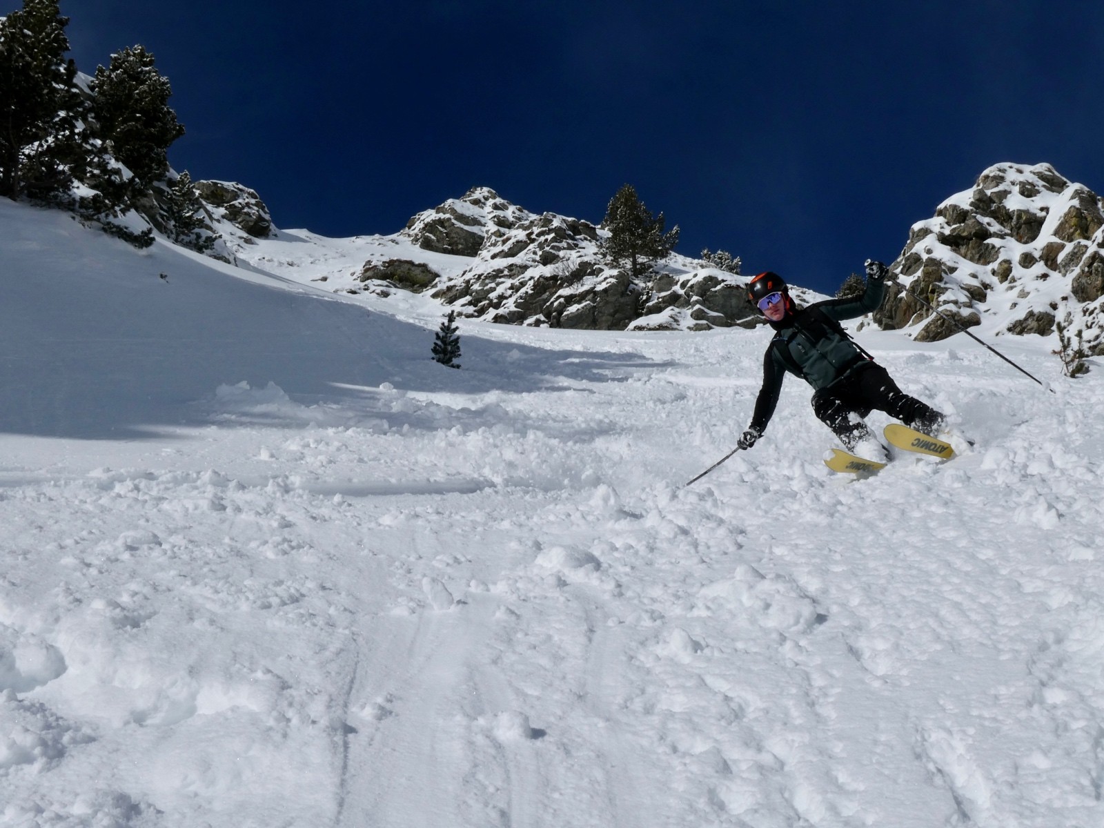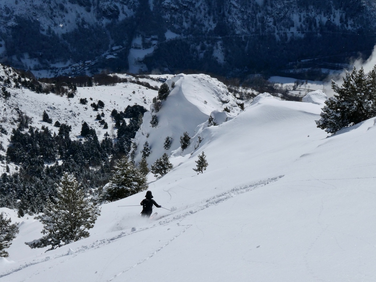 Une excellente journée de ski au soleil, solitaire, en poudreuse vierge, votre serviteur à la trace tout du long (content le Rémo) - bien vu pollo !