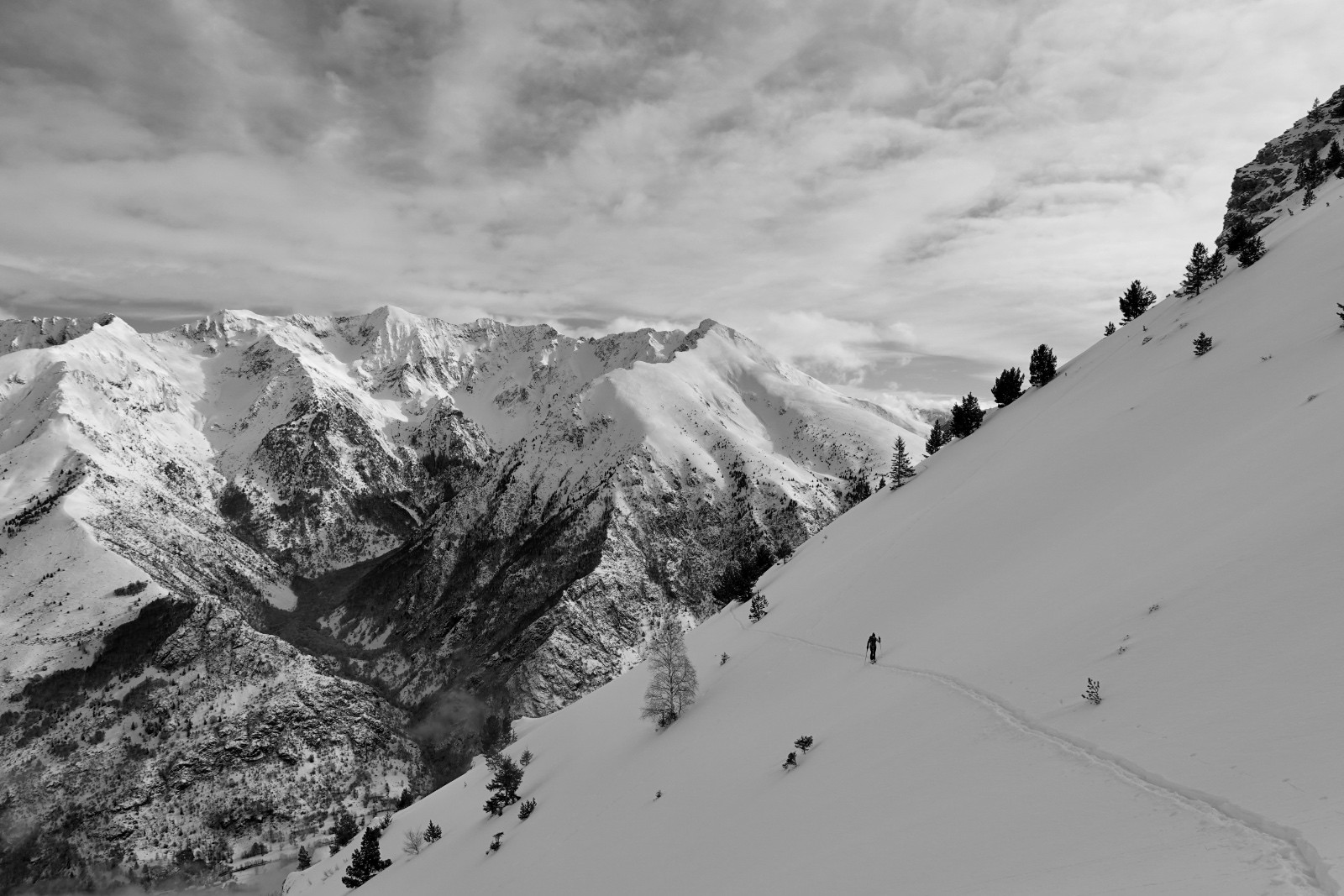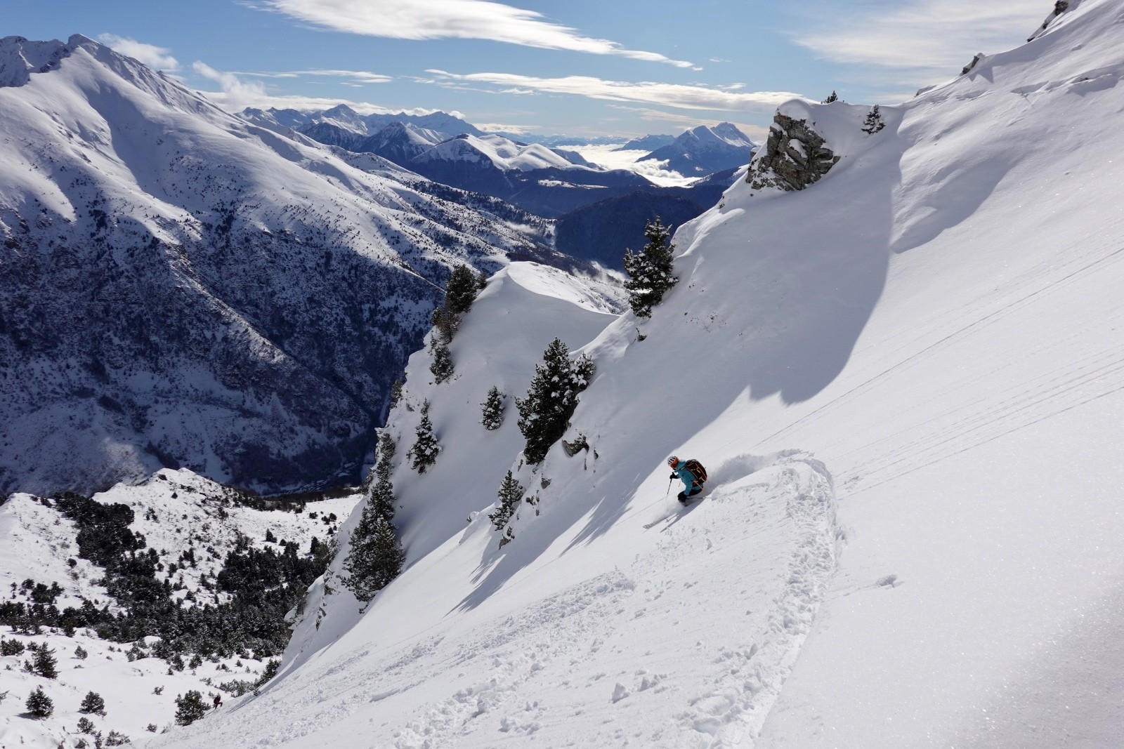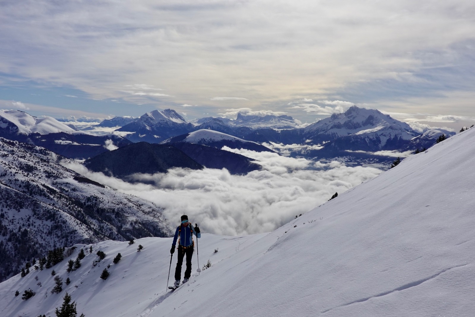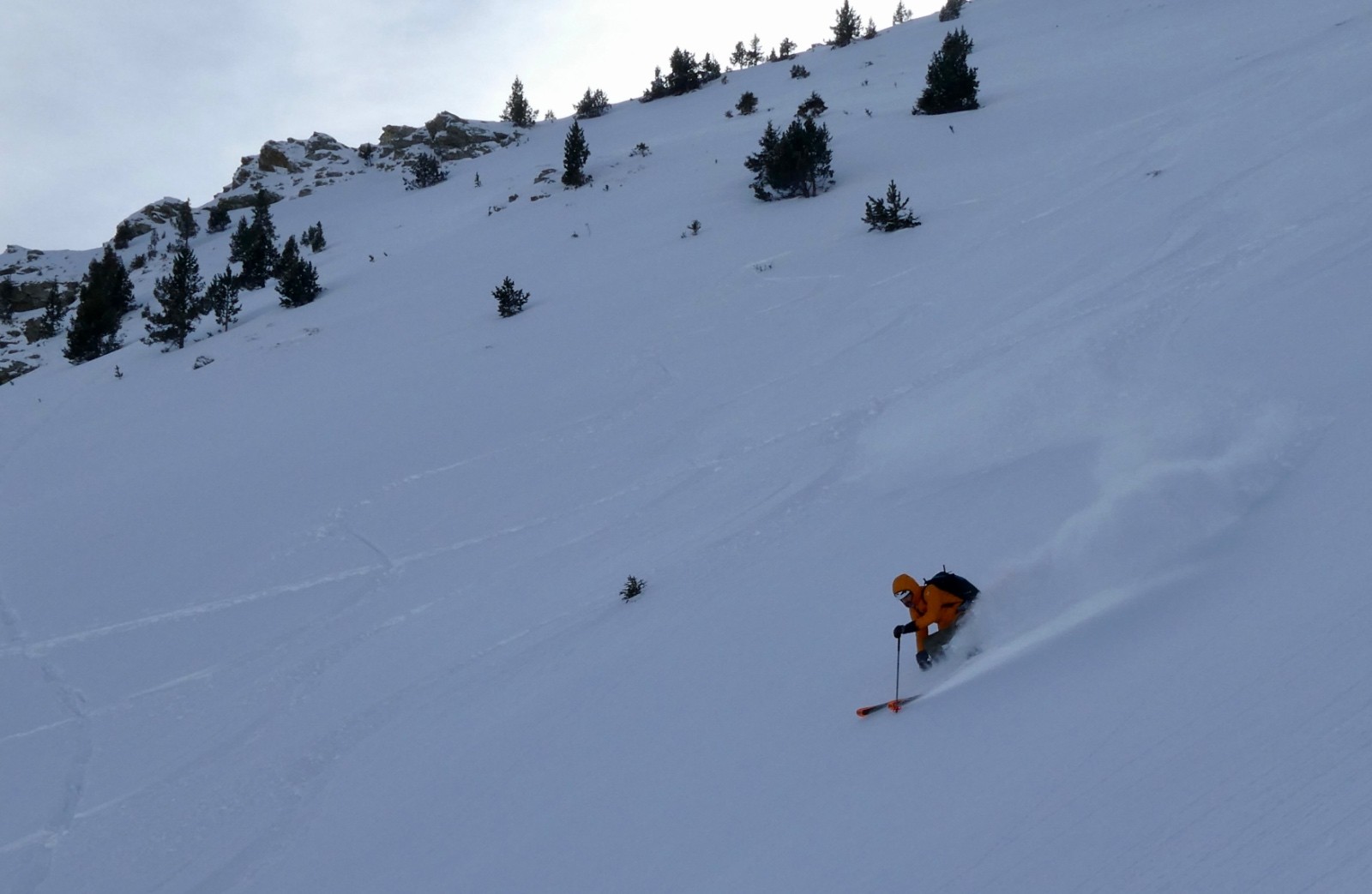 Une excellente journée de ski au soleil, solitaire, en poudreuse vierge, votre serviteur à la trace tout du long (content le Rémo) - bien vu pollo !
