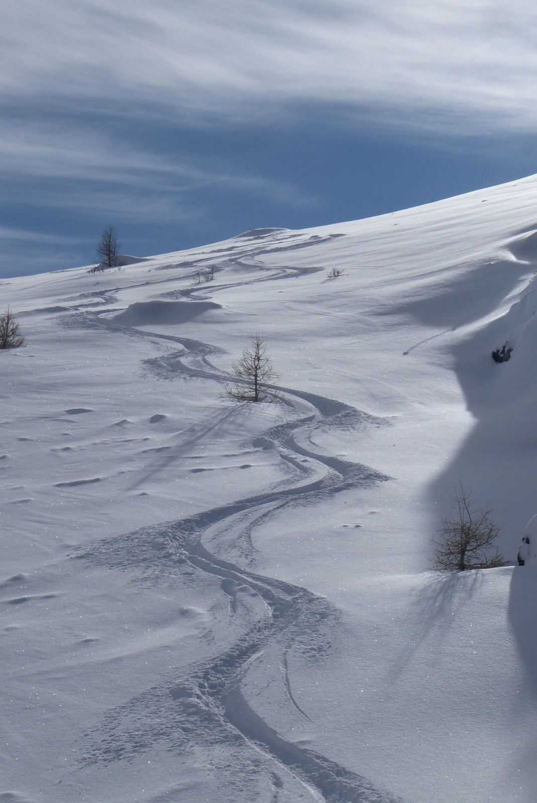 Conditions pour le ski :excellent entre 15 à 30cm de poudre légère sur fond portant en majorité. le vallon est un champ de neige vierge ou les anciennes traces ont disparu