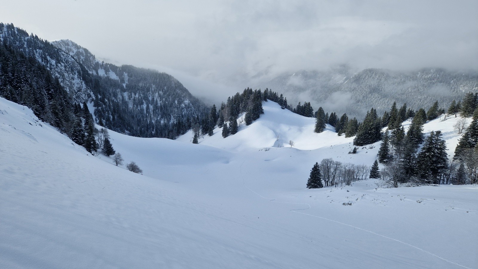 Conditions pour le ski : Du bon ski dans l'ensemble, un fond dure par endroit sinon pas mal de poudre encore à tracer