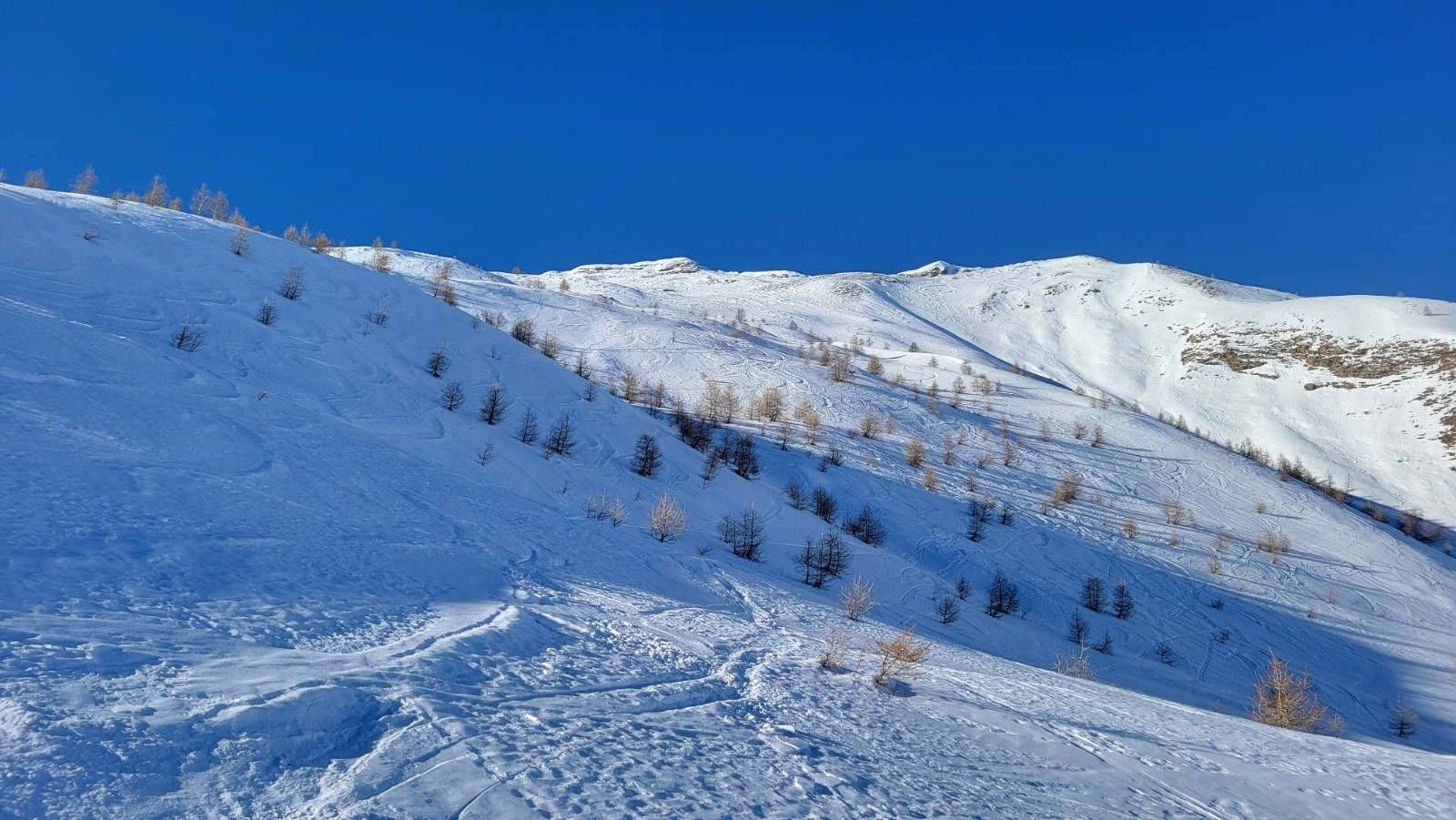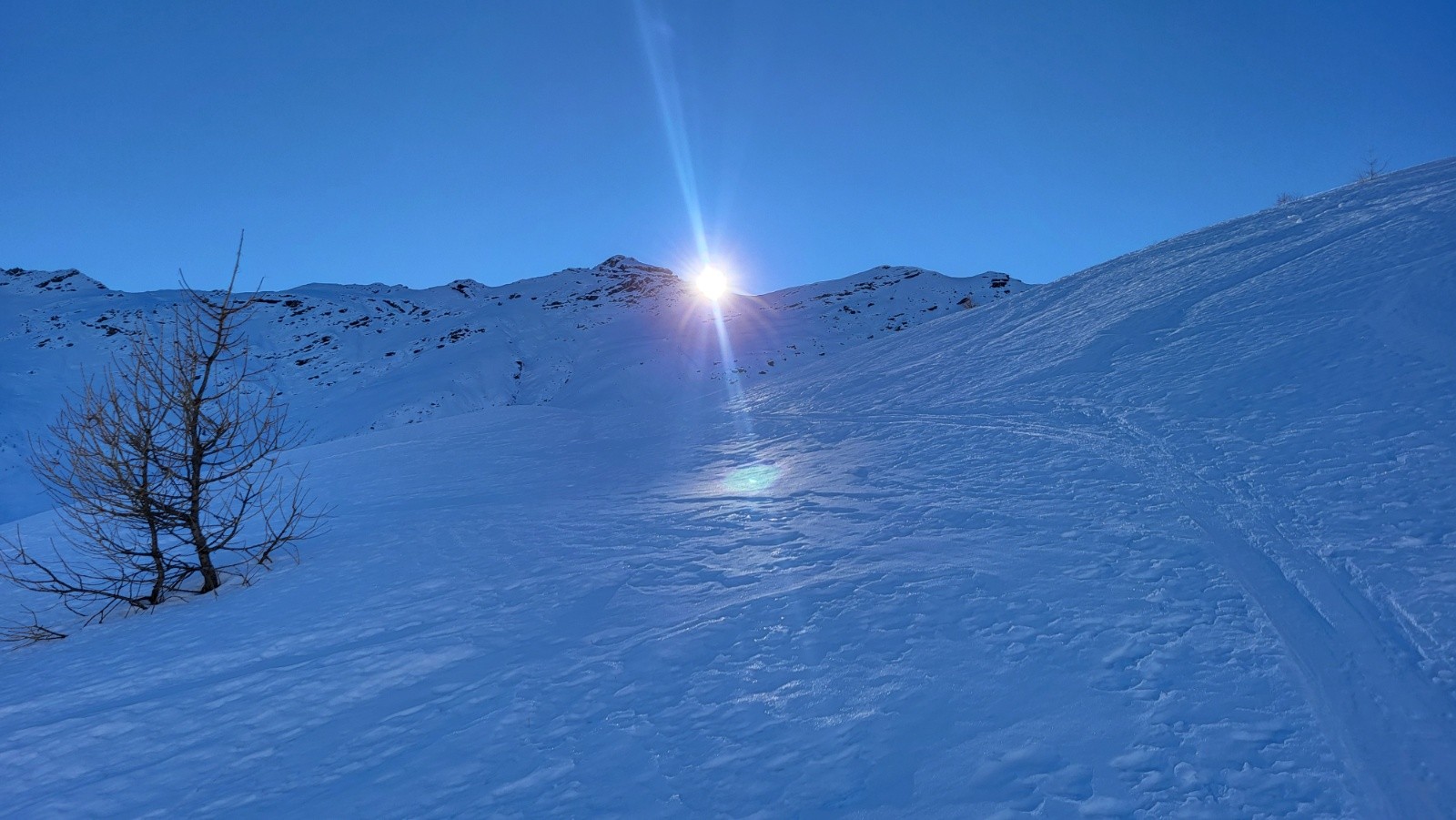 Conditions pour le ski : enneigement continu mais faible dans les bois avec de multiples requins. Au dessus de 2000 m, c'est meilleur avec un peu de vieille poudre et de frisée. En visant bien, ski pas si mauvais entre l'épaule et 2000 m. Descente immonde sous 2000 m, neige trafolée rapée gelée.