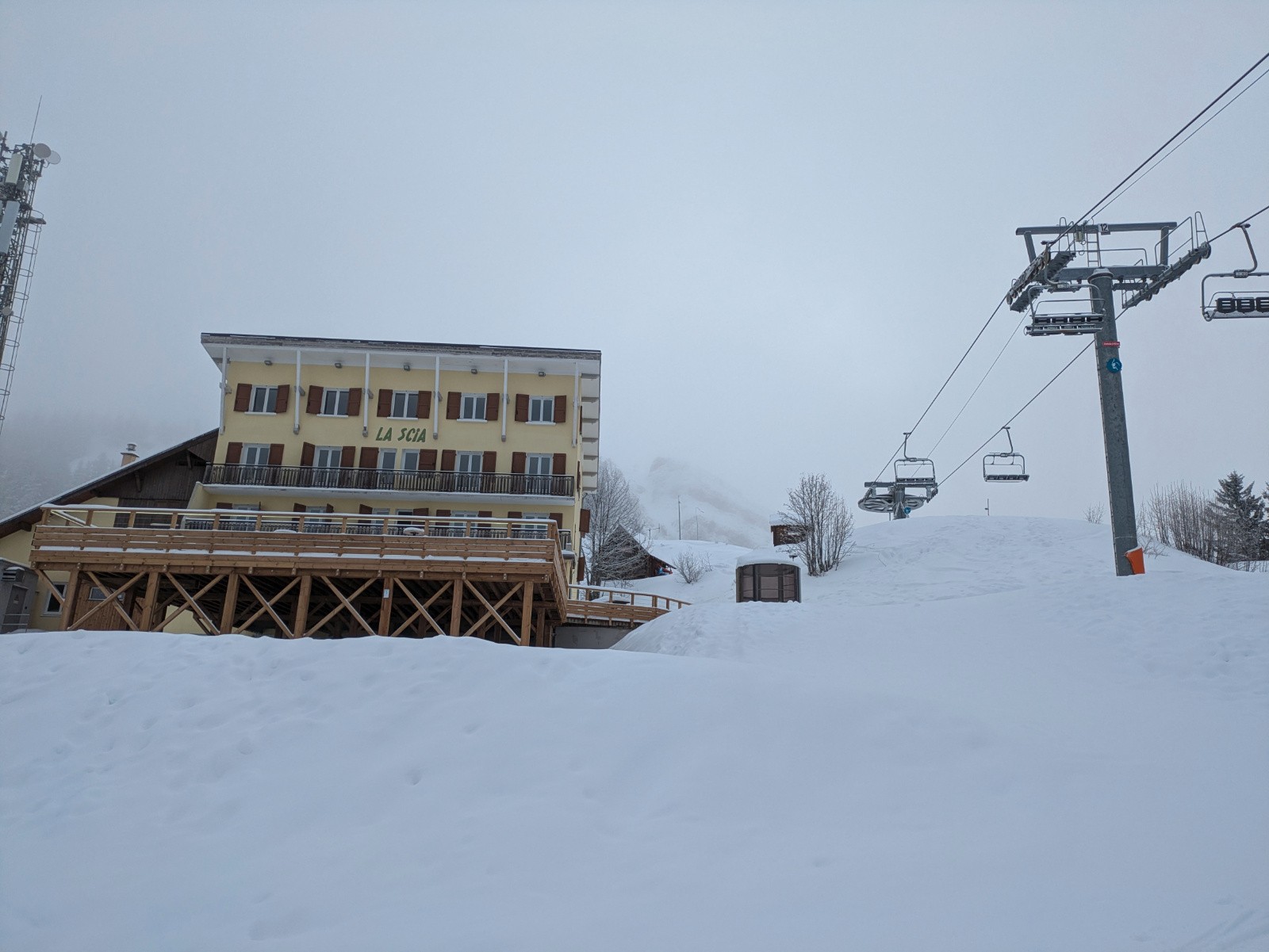Altitude de chaussage/déchaussage : Chaussage aux remontées mécaniques dans le village (fin couche de neige)
