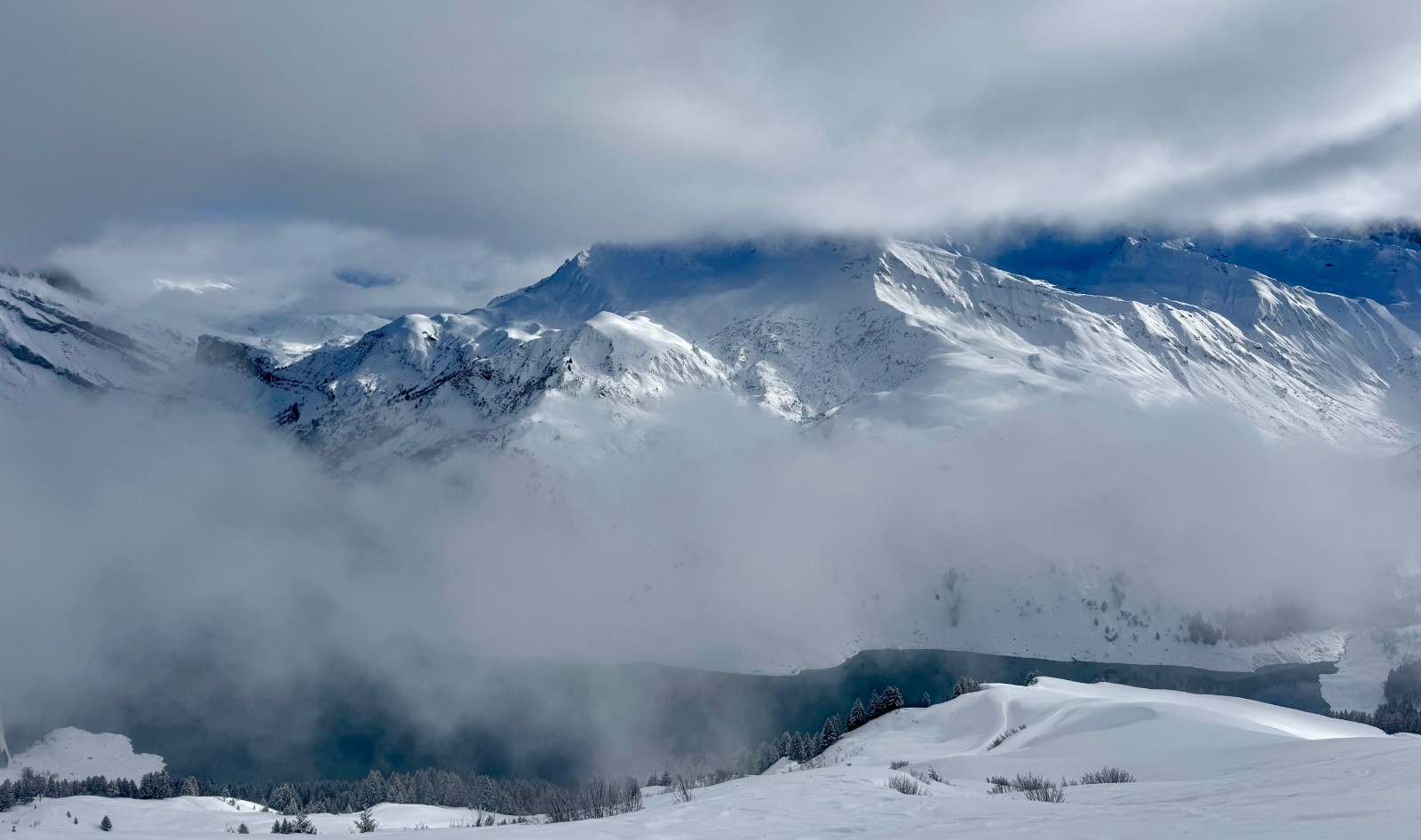 Belle ambiance globalement avec les jeux des nuages et du soleil, du très bon ski. 4,5/5.