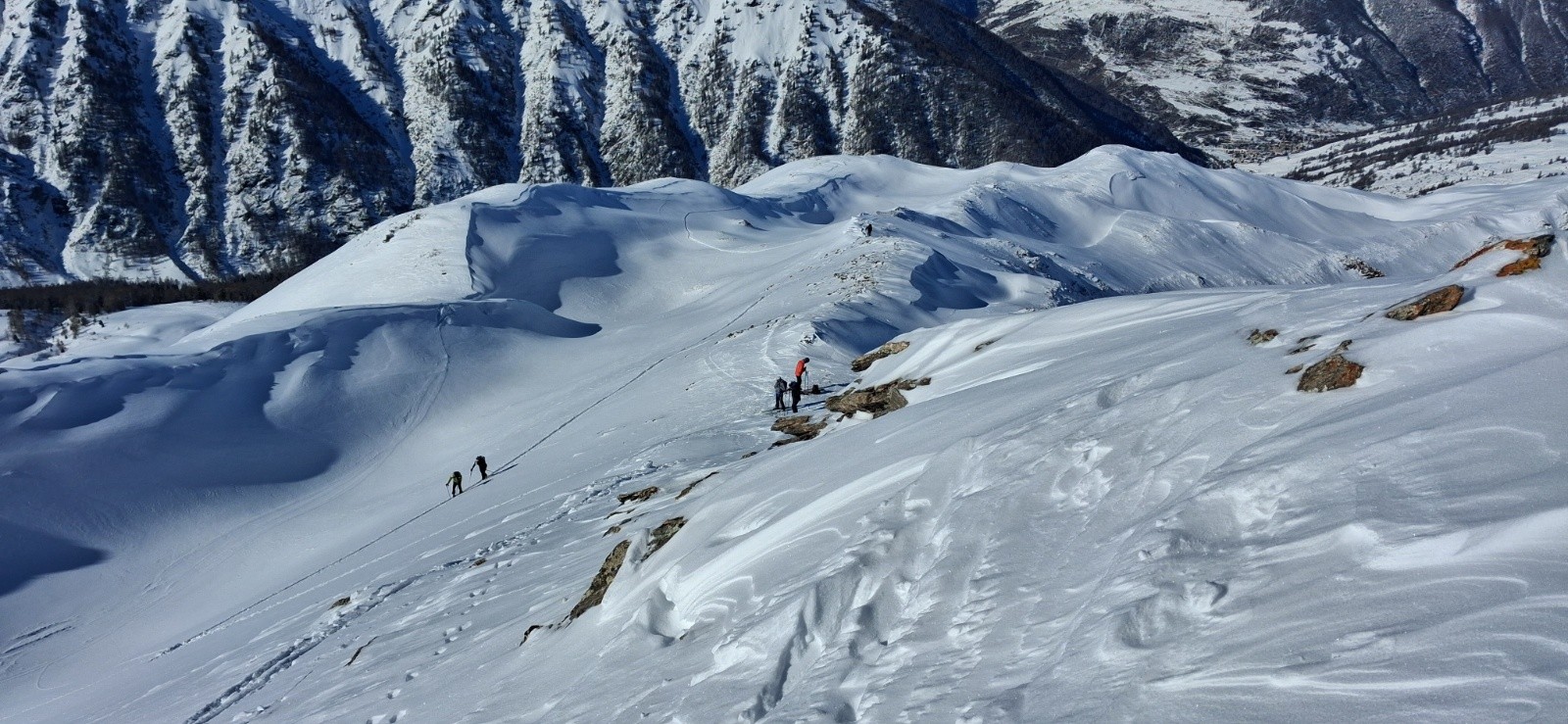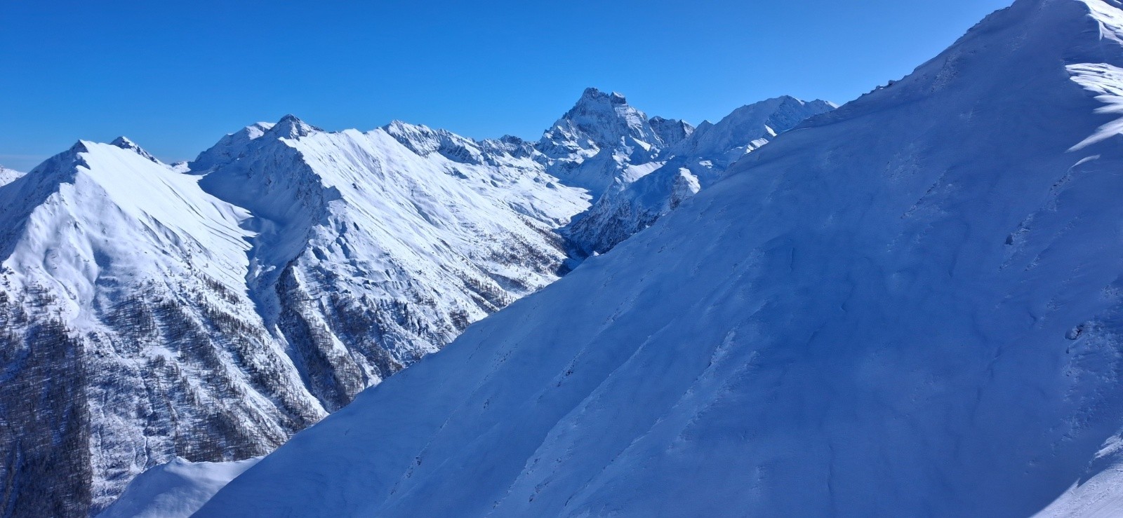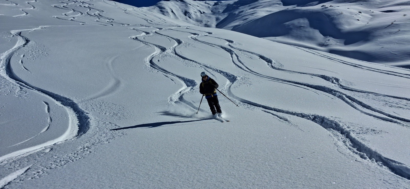 La descente du Pic en face Sud Est s'est faite dans une excellente neige pas suffisamment épaisse pour protéger les skis des cailloux.