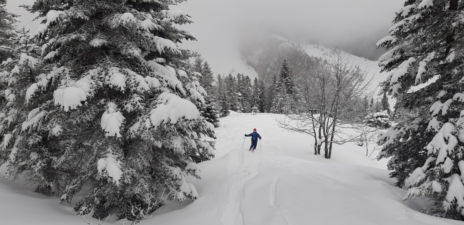 Conditions pour le ski : Poudre légère tombée durant la nuit, recouvrant en grande partie les traces du we. Un bon 5cm au Habert, s'amplifiant à partir de la forêt, 10-15cm sous le Léchaud, voir plus avec accus.