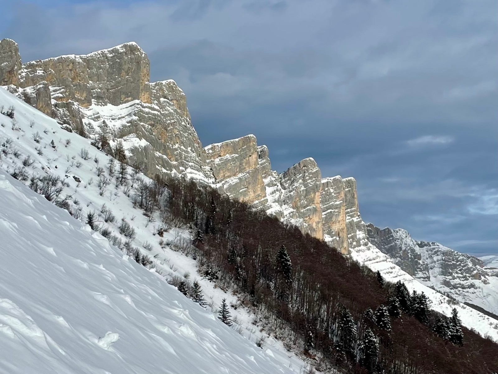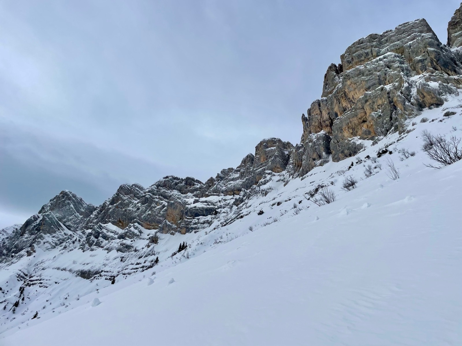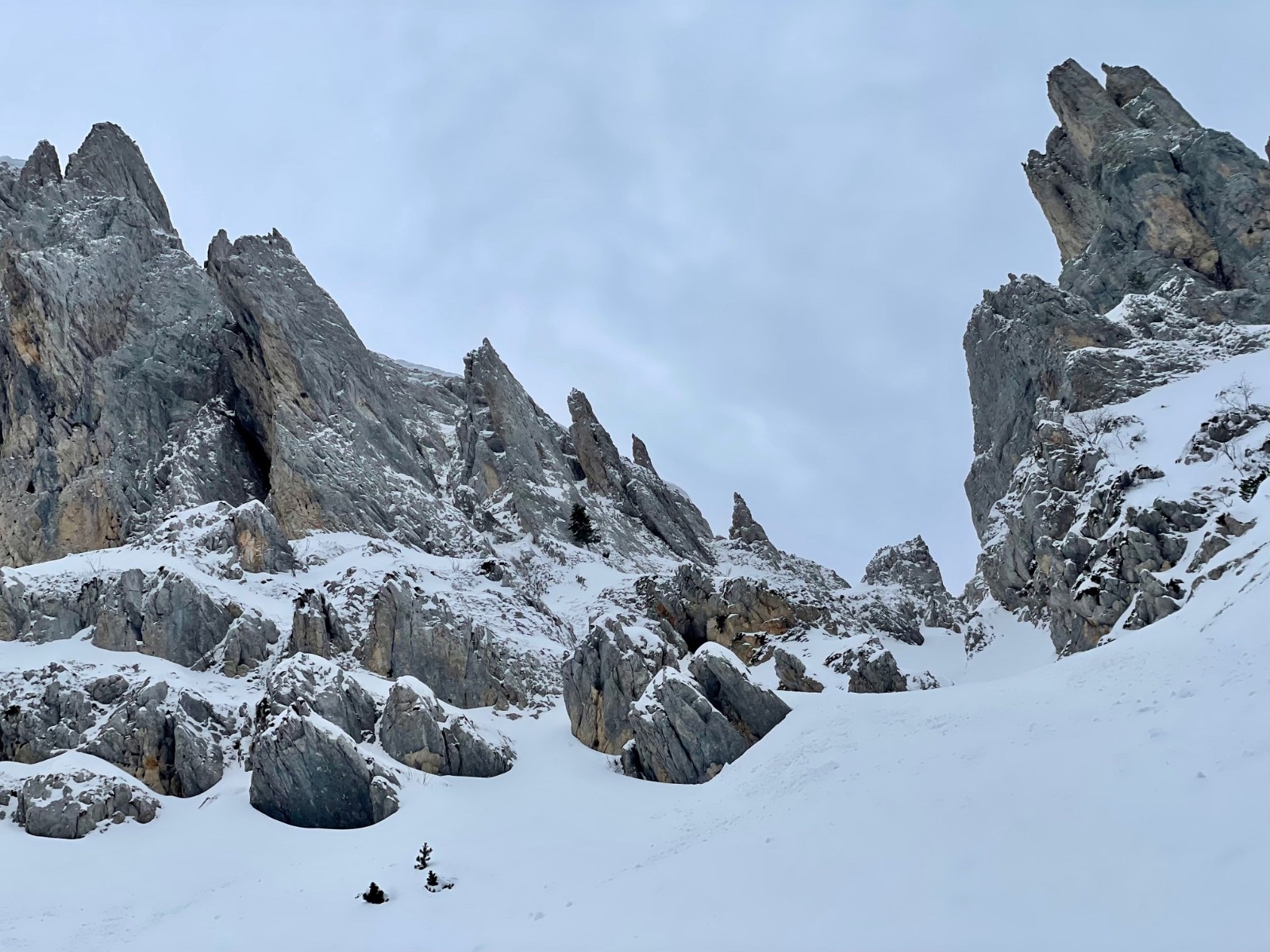Conditions nivo et activité avalancheuse : Une plaquounette à la descente en pied de couloir. Des zones accumulées à contourner dans les pentes raides.