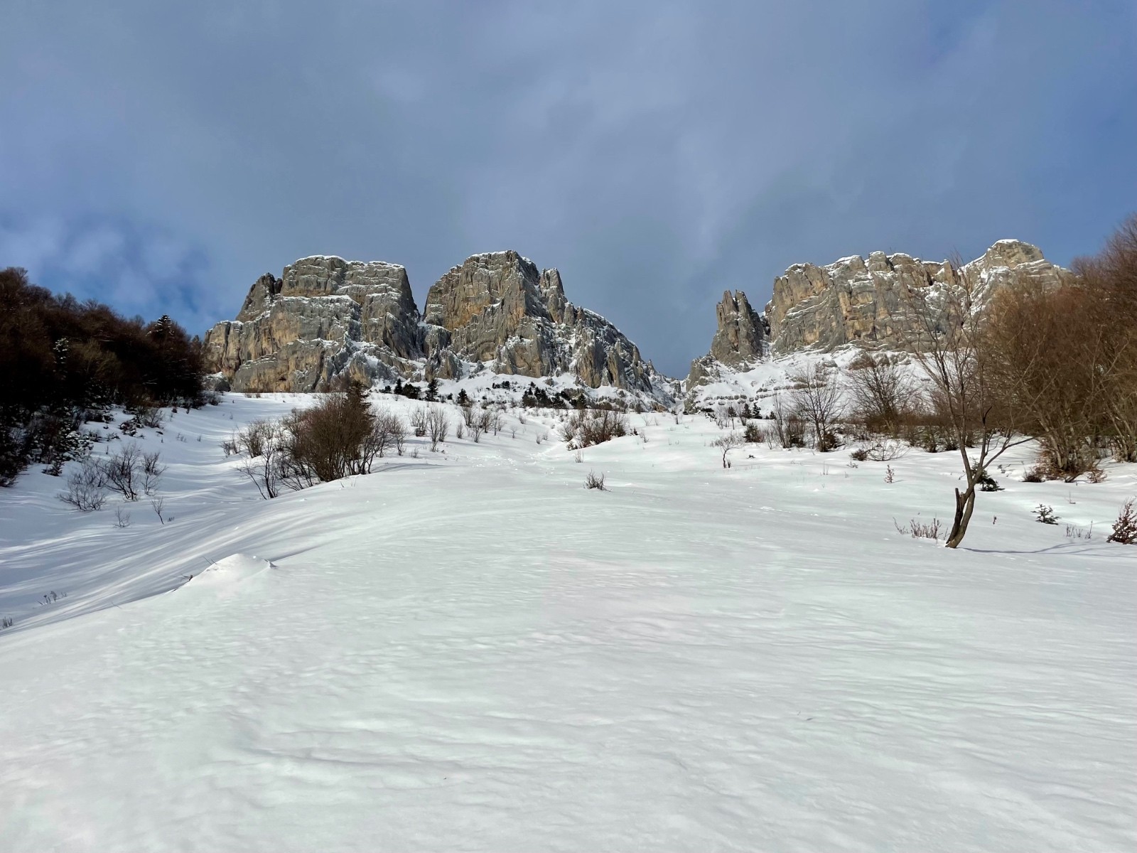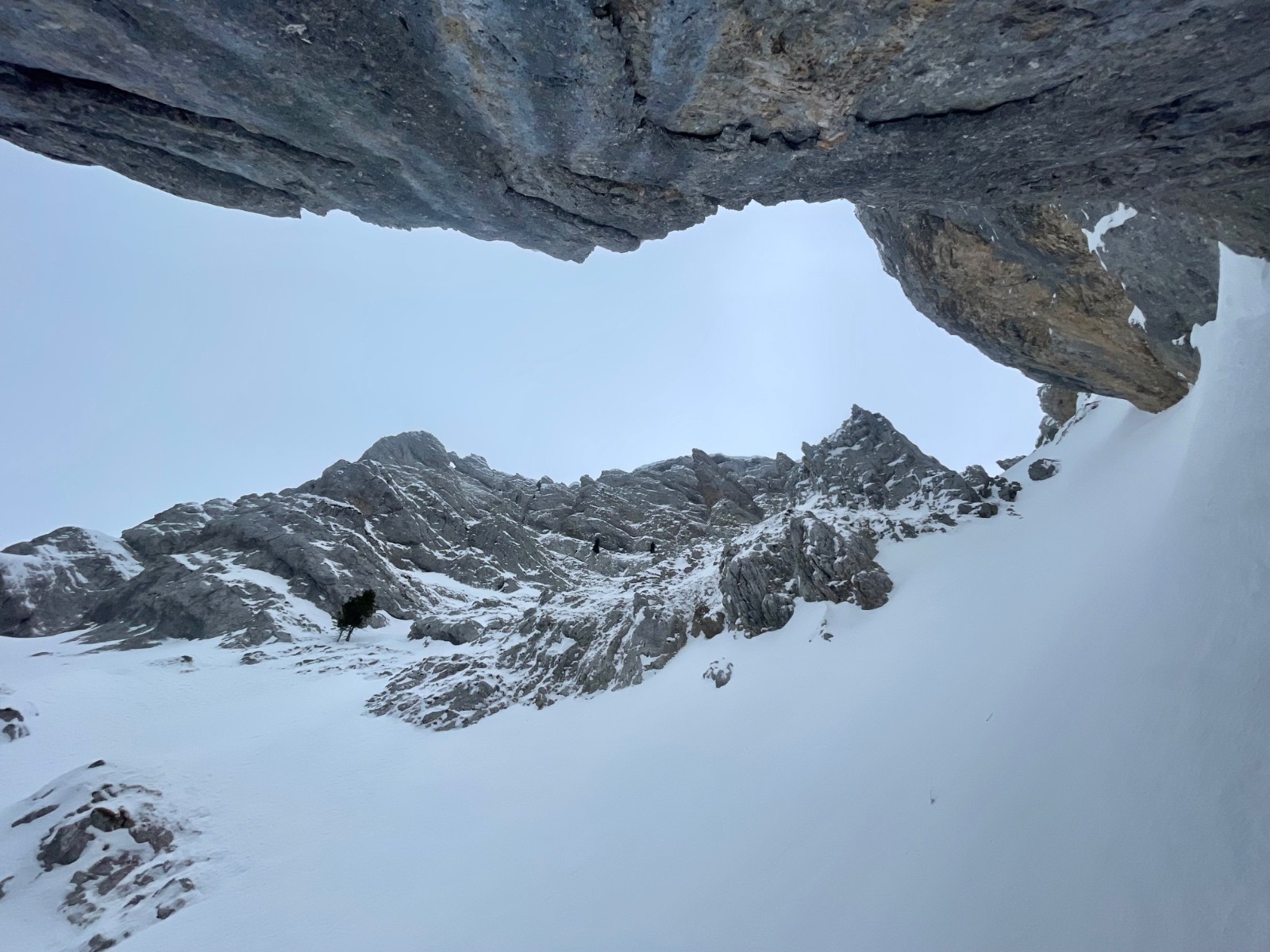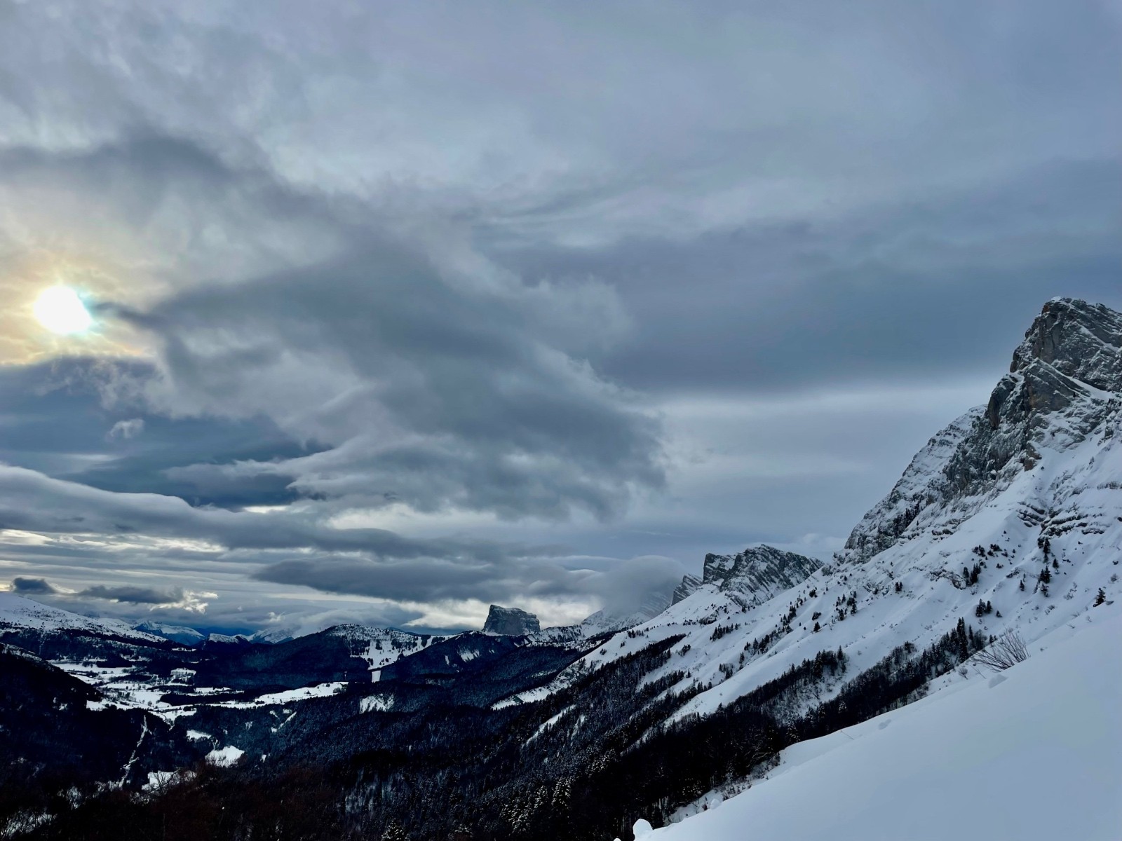 Conditions nivo et activité avalancheuse : Une plaquounette à la descente en pied de couloir. Des zones accumulées à contourner dans les pentes raides.