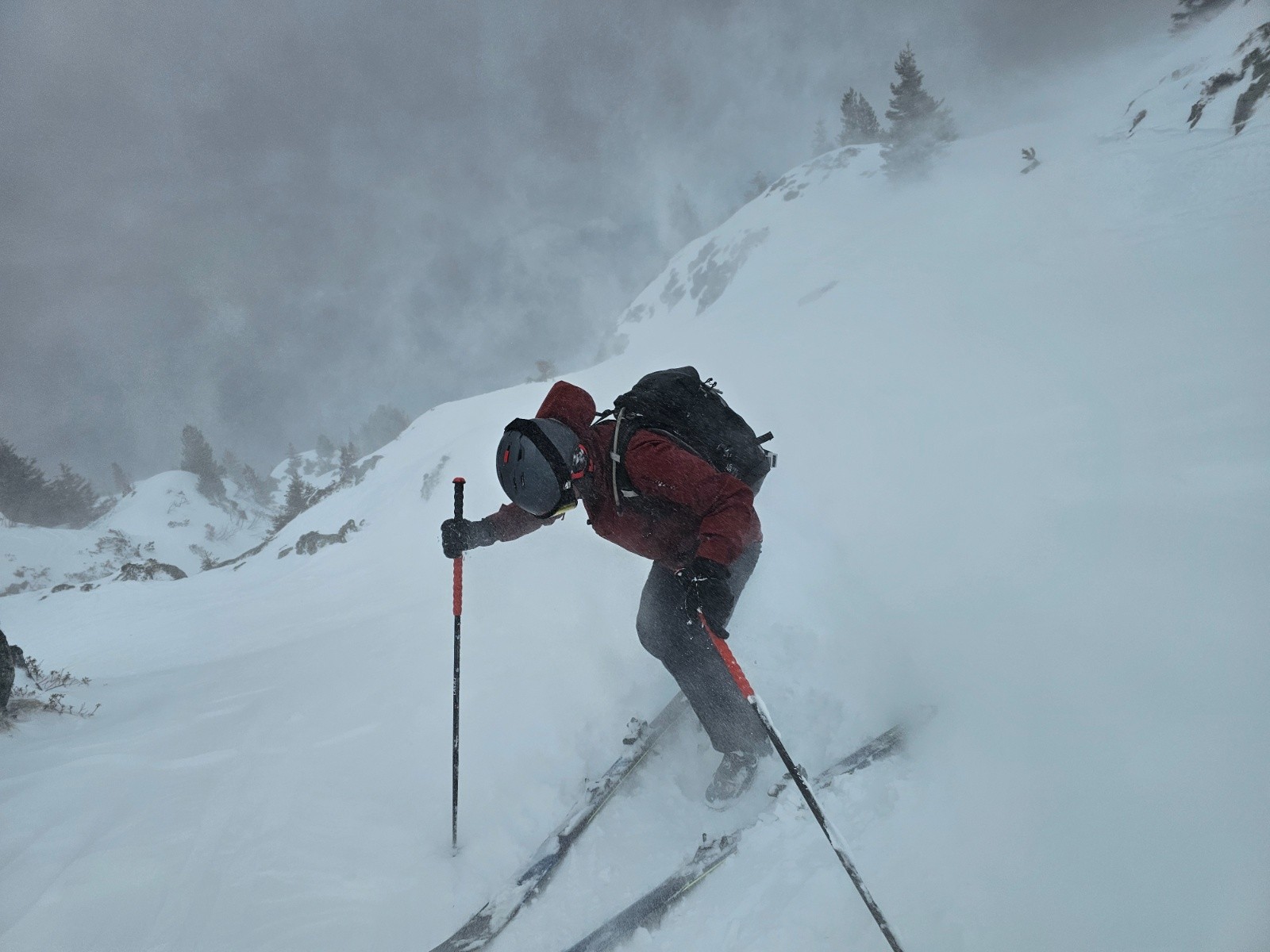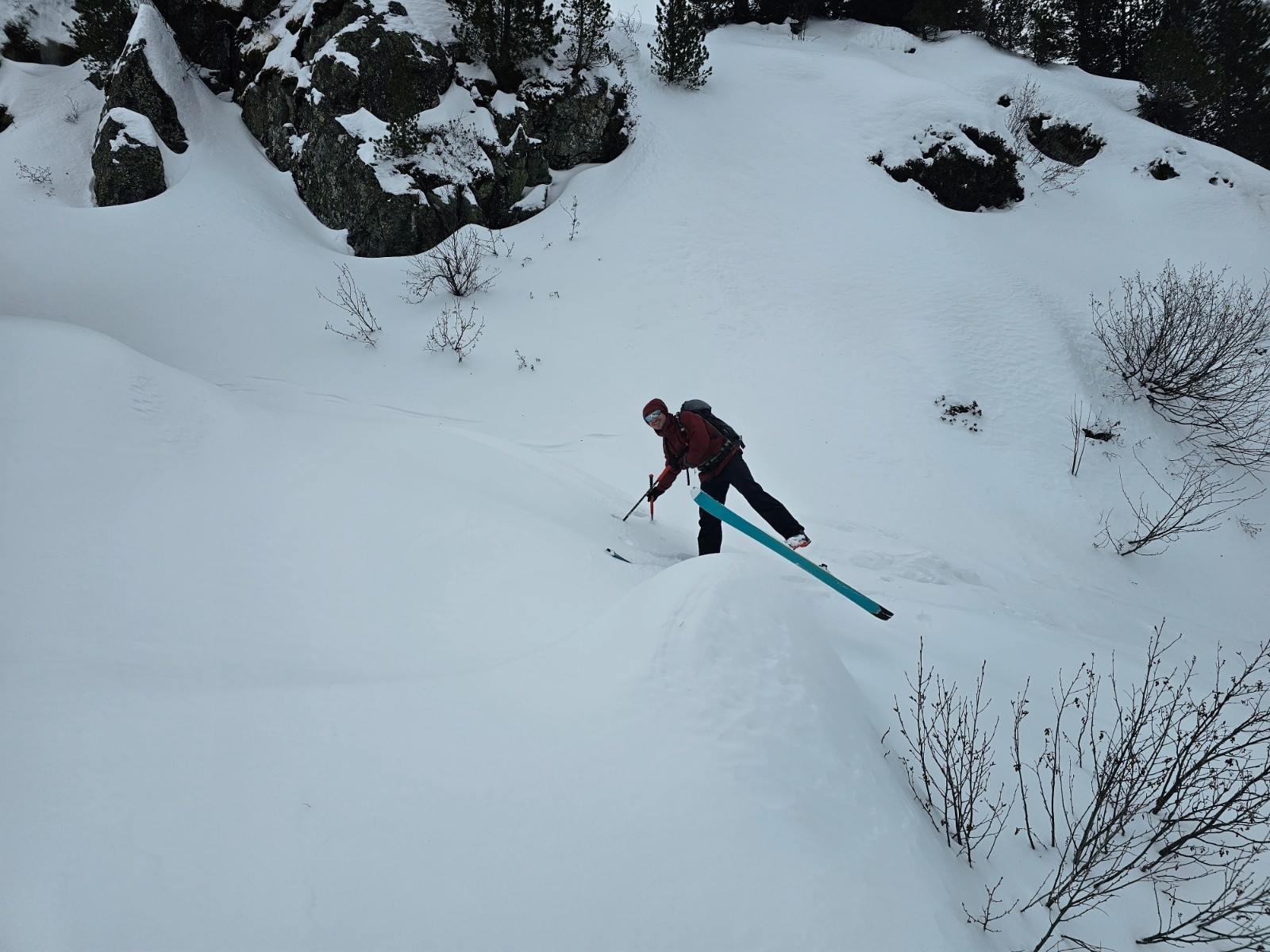 Parti avec Emmanuel du Gum, vers le col de La Pra. La montée n'a pas pose de problème, même si c'est peu skiable. Sous le lac, à hauteur des canalisations historiques, on a été pris dans un vent violent et on a du faire demi-tour. On a croisé un chamois qui a fait le même choix, apparemment. Bref ...sortie ...bol d'air, comme disent les anciens.