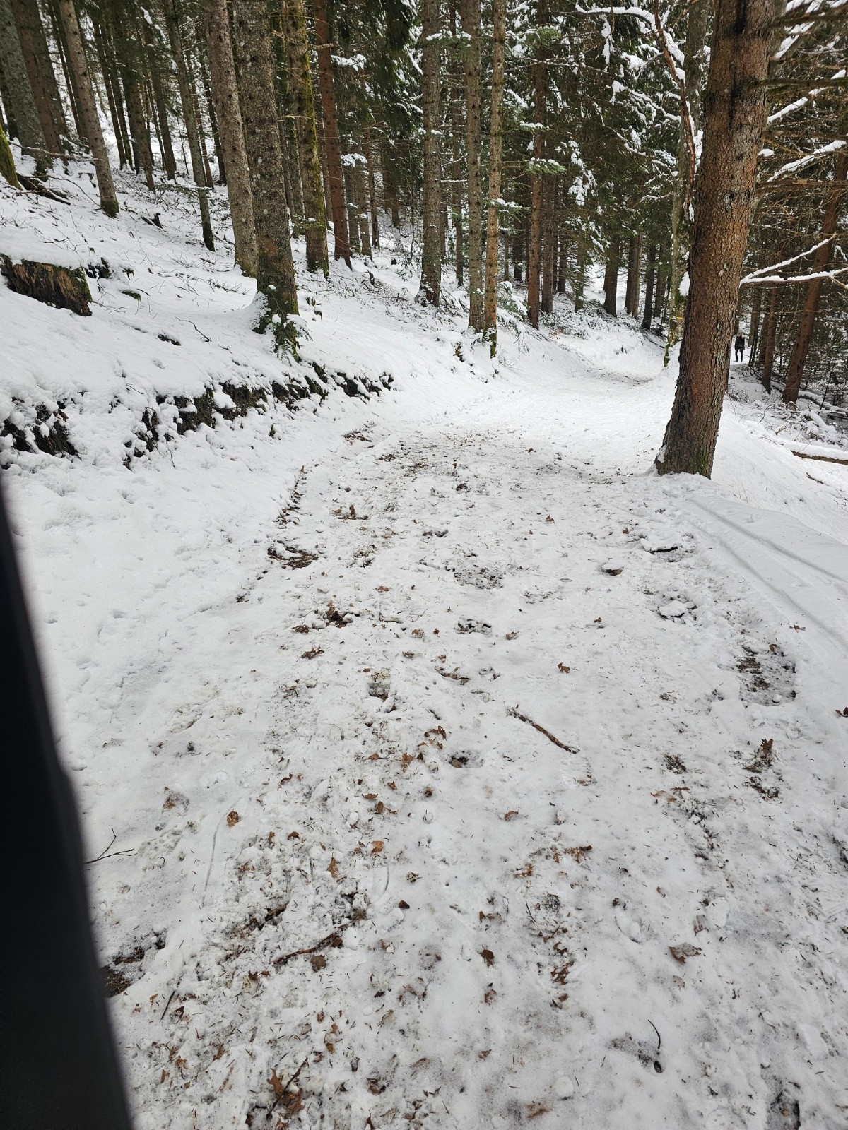 Altitude de chaussage/déchaussage : chaussage au parking, mais nécessite de déchausser dans les bois, jusqu'à la sortie.