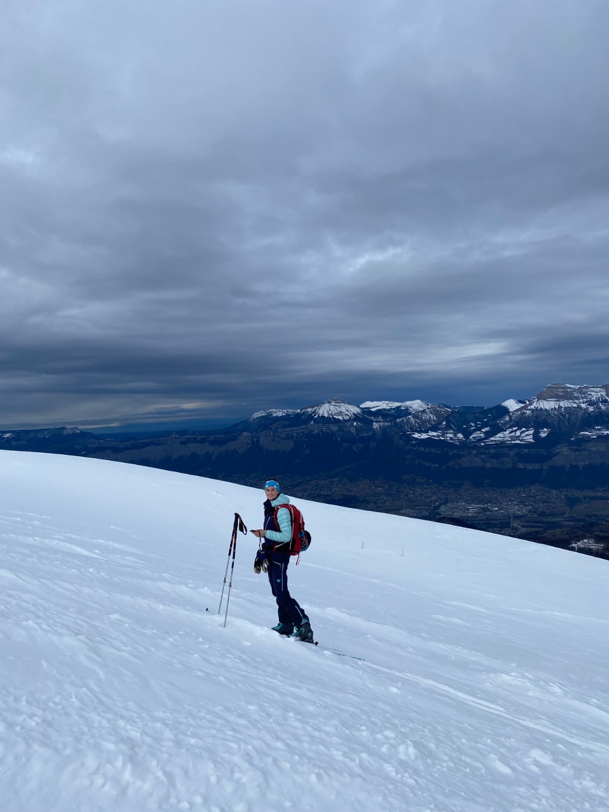Première descente à droite du sommet dans de la super poudreuse presque pas tracée ❄️❄️