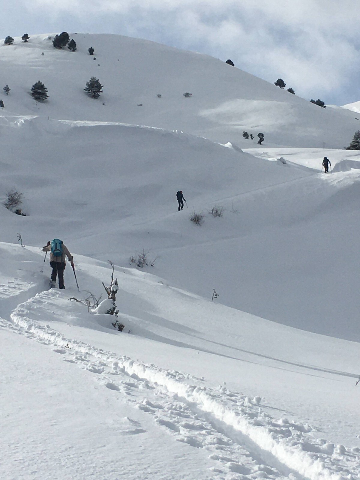 Conditions nivo et activité avalancheuse: Els butlletins donaven risc 4 a la zona, però el vessant N del Taga te uns pendents molt suaus i baixa exposició a allaus