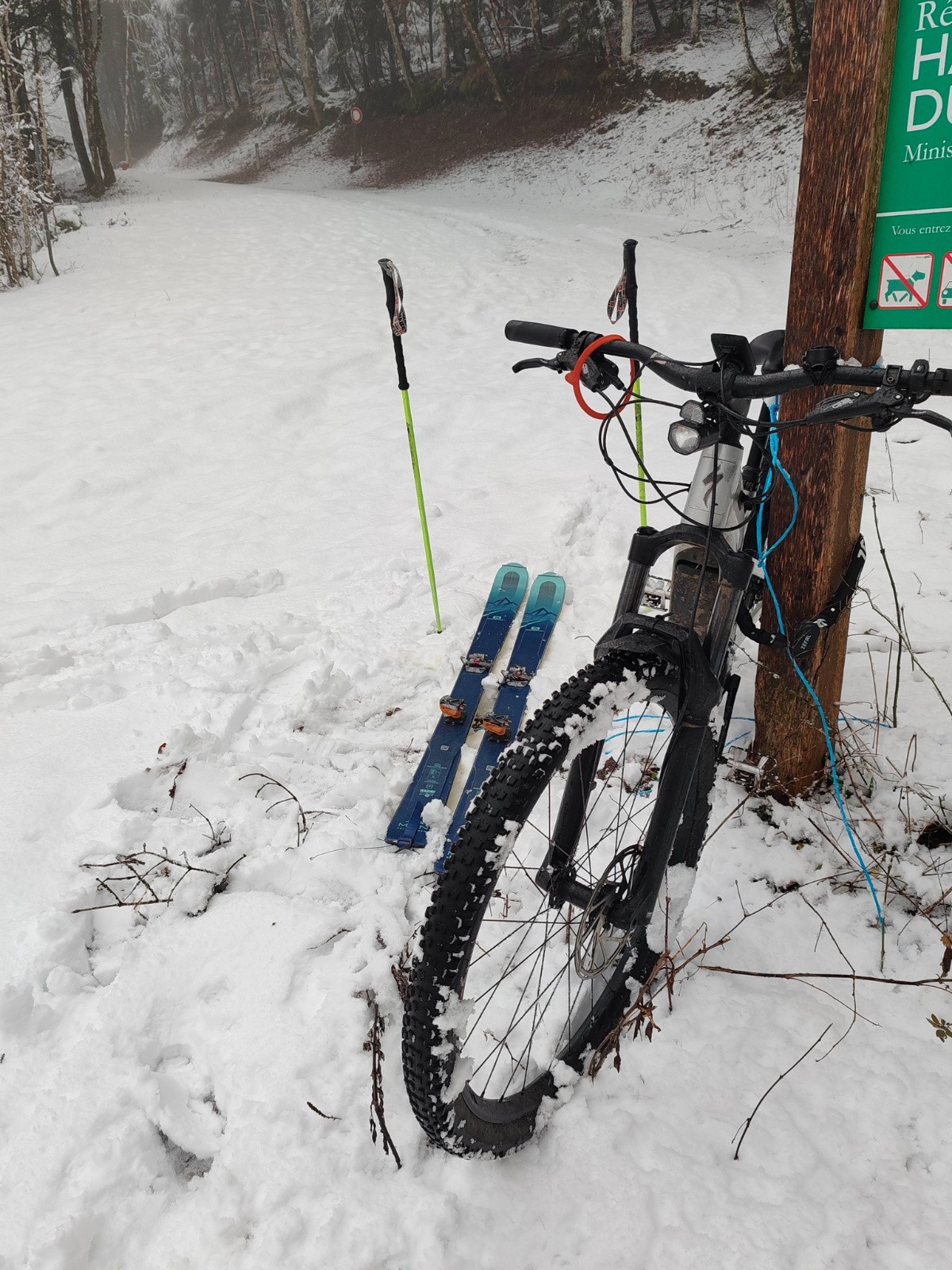Itinéraire suivi : Véloski, VTT sur neige sluchy, j'ai chaussé vers 900m, il a plut très haut , c'est tout rincé et la couche de "fraiche" ne mérite pas ce terme, malgré ça ,