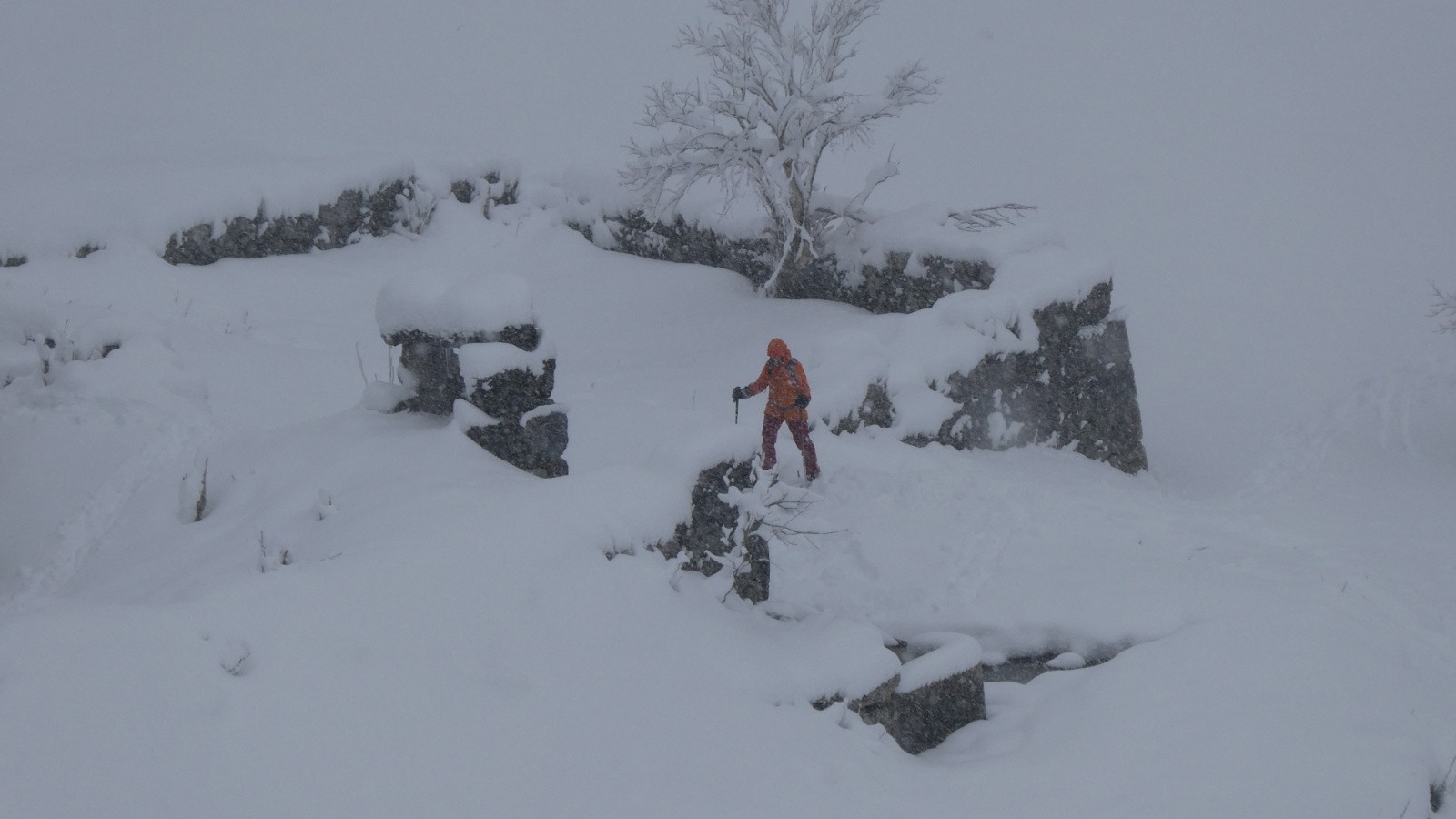 Météo/températures : 0° au départ - 1° au retour - neige en discontinu - du vent sur la Prairie du Col