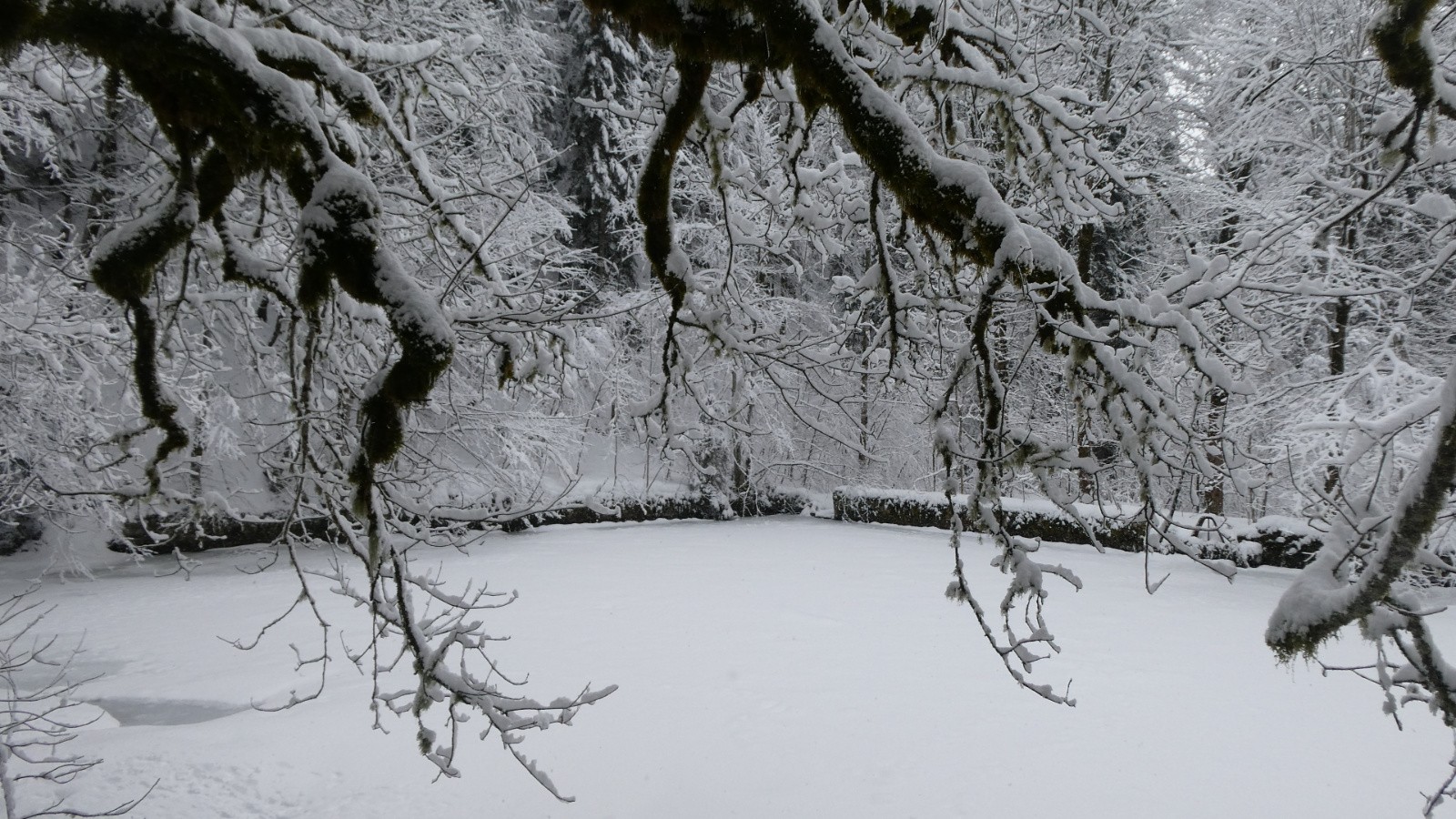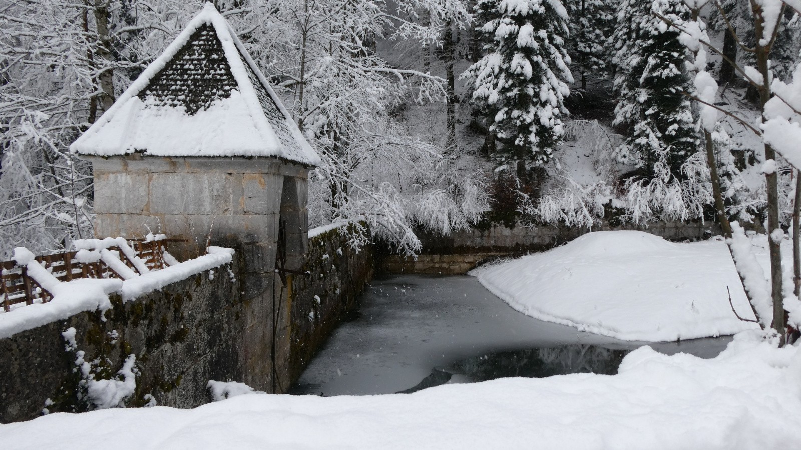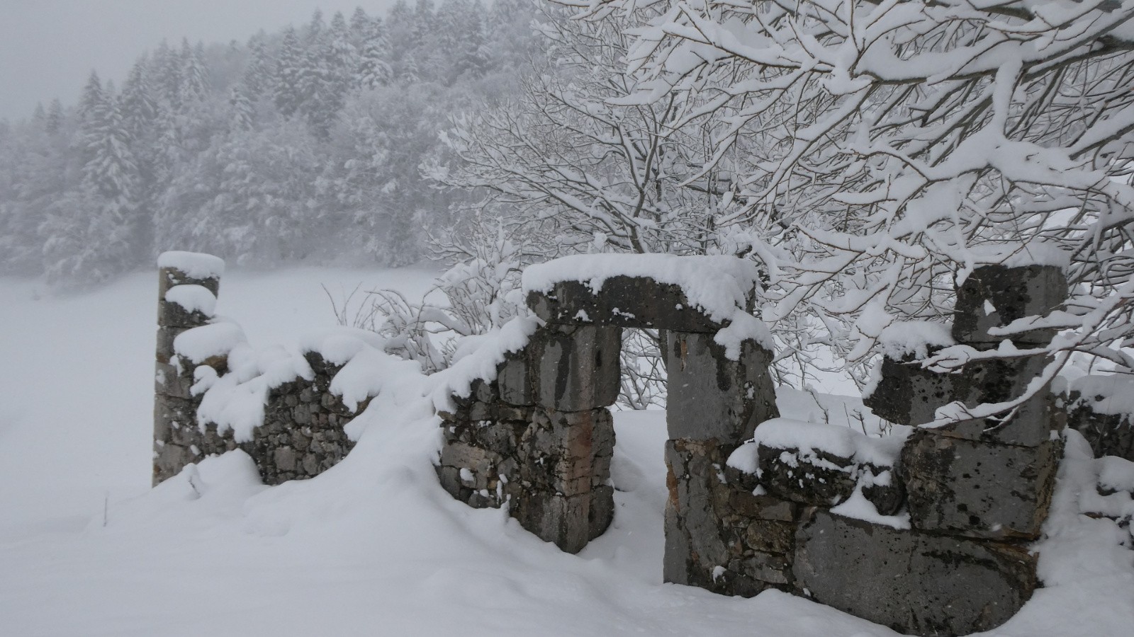 Quant aux yeux, ils allèrent d’une bâtisse à une autre, le patrimoine cartusien étant riche dans ce secteur. Se succédèrent le Monastère (à tout Seigneur, tout Honneur) avec ses magnifiques toits en pente sur lesquels lugent les paquets de neige attirés par la gravité, le petit vivier désaffecté, la belle bâtisse pour accueillir les familles des moines, la scierie bien fournie, la fontaine, le grand vivier, ND de Casalibus, puis, au retour, les belles ruines en S de la Prairie du Col, le Habert de Billon et, enfin, la visite à la Vierge Noire de la Chapelle du Monastère.