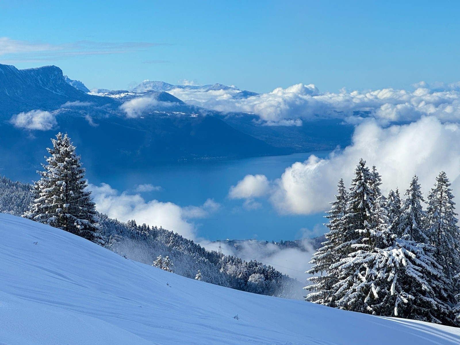 Conditions pour le ski : Excellente neige, 20-30cm tombés sans vent, bien tassée sur le fond et poudreuse en surface.