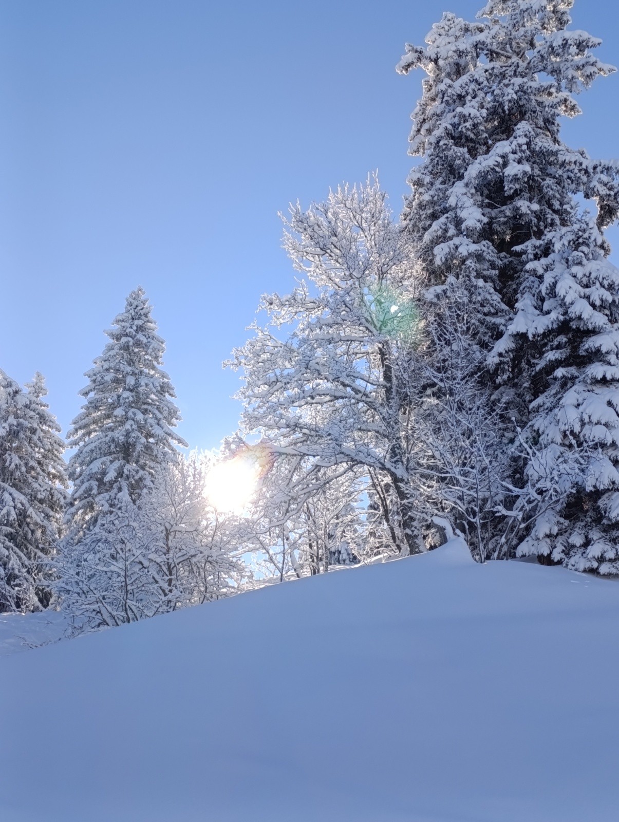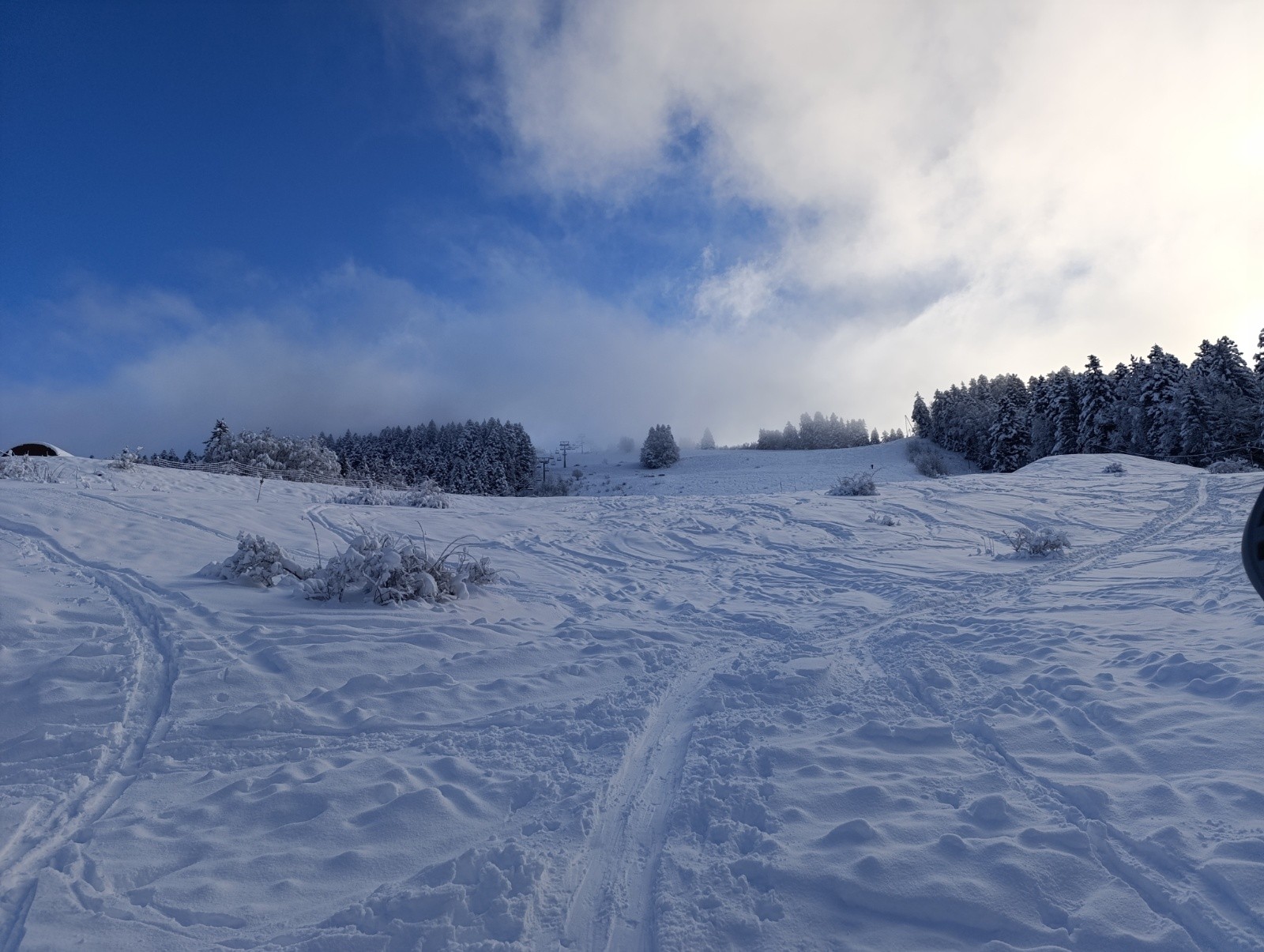 Poudre légère au creux de la neige..piste damée..jusqu'aux Essarts..puis neige plus lourde..mais qui tourne encore bien..meme beaucoup trafollee..