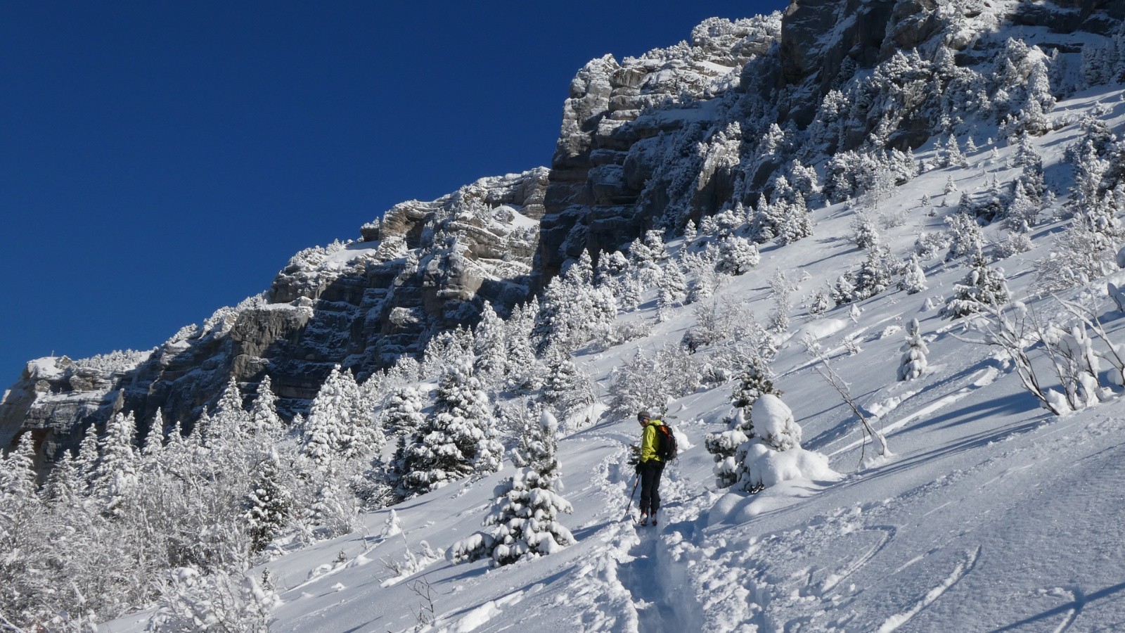 Il y avait avec nous l’ami Jacques toujours enthousiaste devant l’inconnu et pour faire la trace devant nous. L’inconnu lui fut révélé sans rien lui cacher et le laissa ébloui. Comment pourrait-il en être autrement ? On est dans la Chartreuse lumineuse, ne l’oublions pas. Par contre, le fossé de labour était déjà creusé. Et profondément. Merci à ceux qui s’y sont attelés au-delà de la forêt et ont manié le soc avec une régularité métronomique.