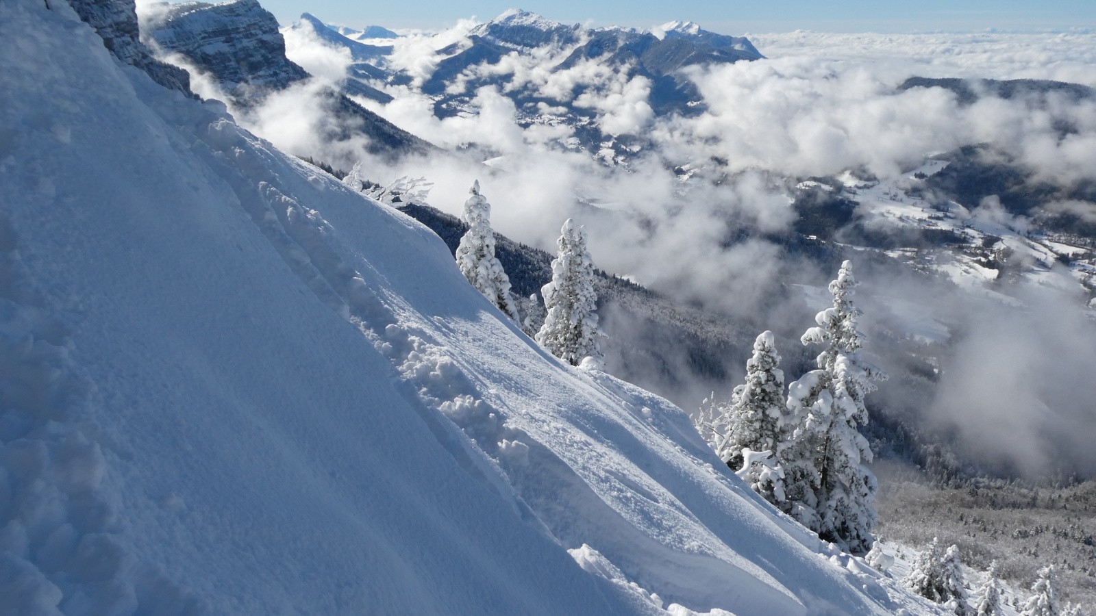 - des falaises jusqu'à l'entrée du bois, excellente poudreuse profonde et légère