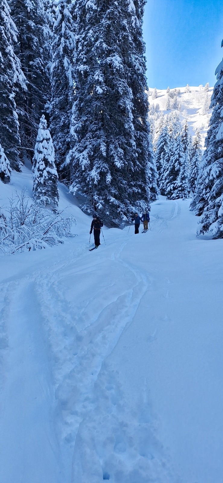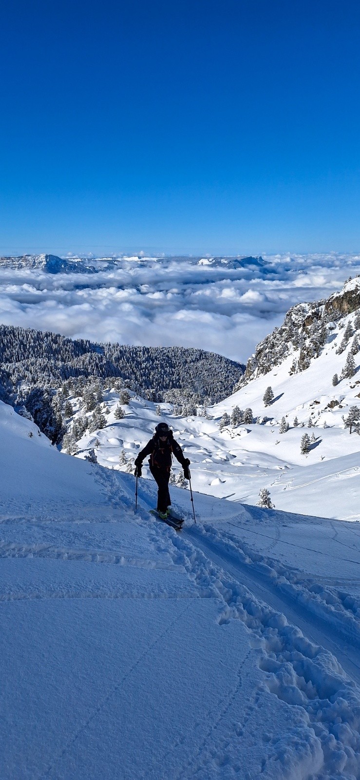 Conditions pour le ski : trace assez empruntée donc facile à suivre. Descente par les pistes avec une neige moyenne.