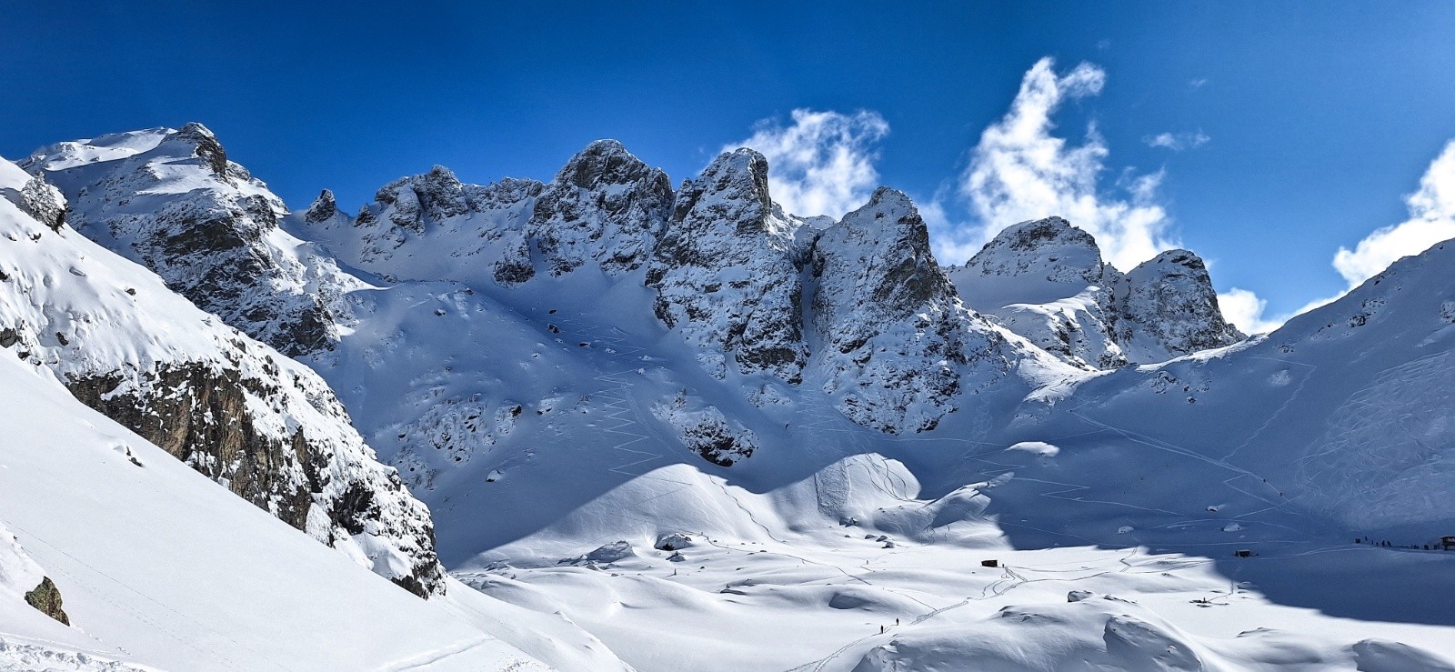 Conditions nivo et activité avalancheuse : niveau 3. Pas de signe d'instabilité sur ce parcours. Par contre éboulement constaté sur une des pentes raides derrière les lacs Robert.