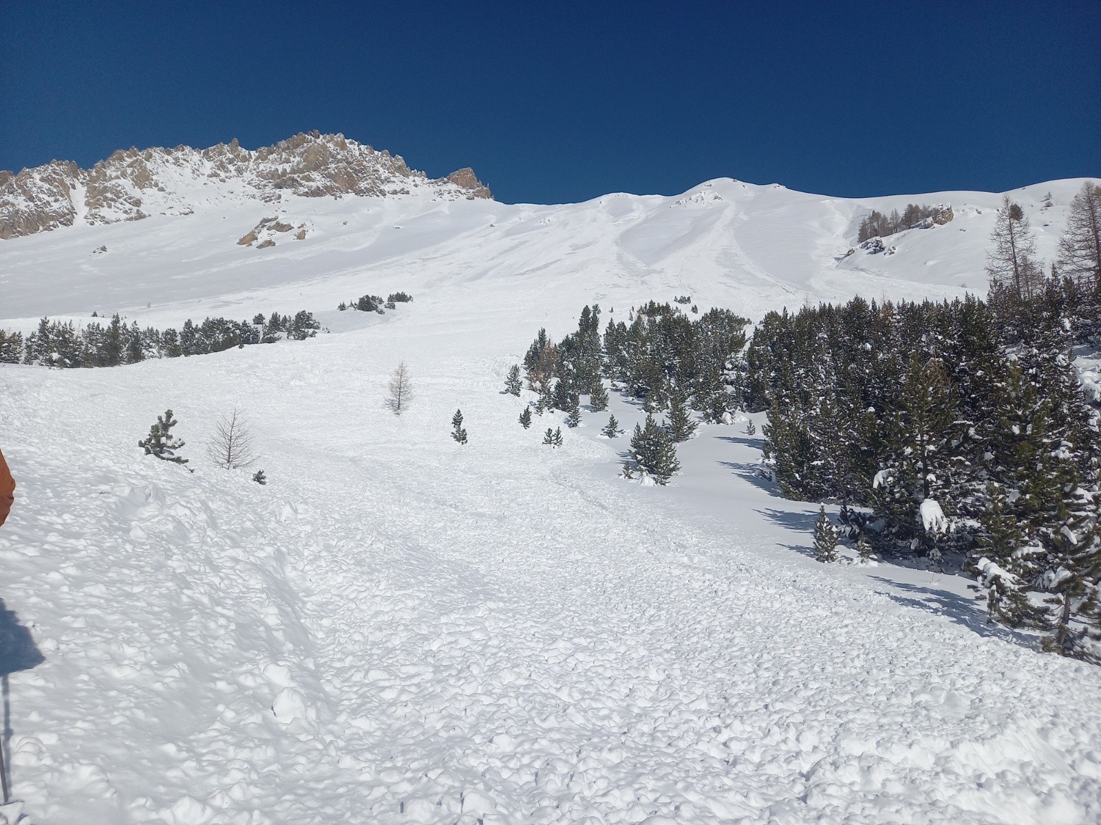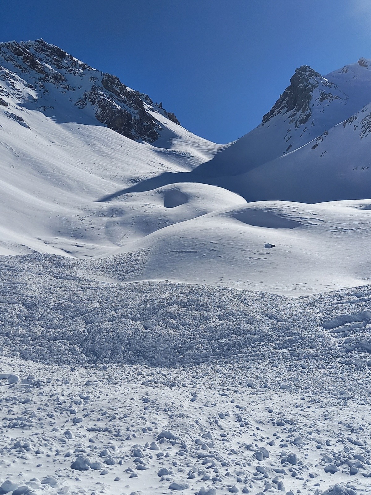 Conditions nivo et activité avalancheuse : beaucoup de coulées de partout, pas de "woomf" on a fait attention et laisse de l'espace dans les endroits pentus.