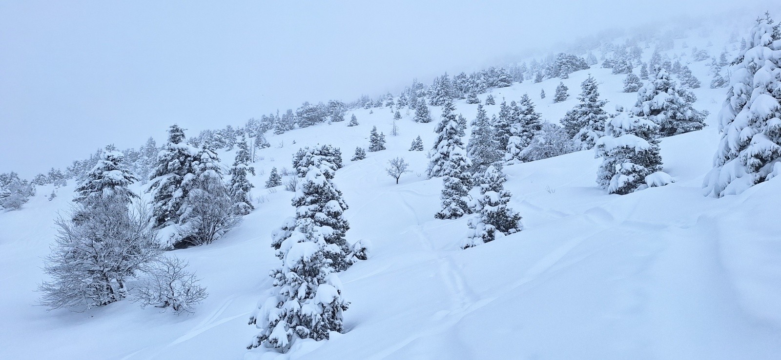 Météo/températures : départ sous la neige, puis progression dans les nuages. Température entre -2° et 2°.