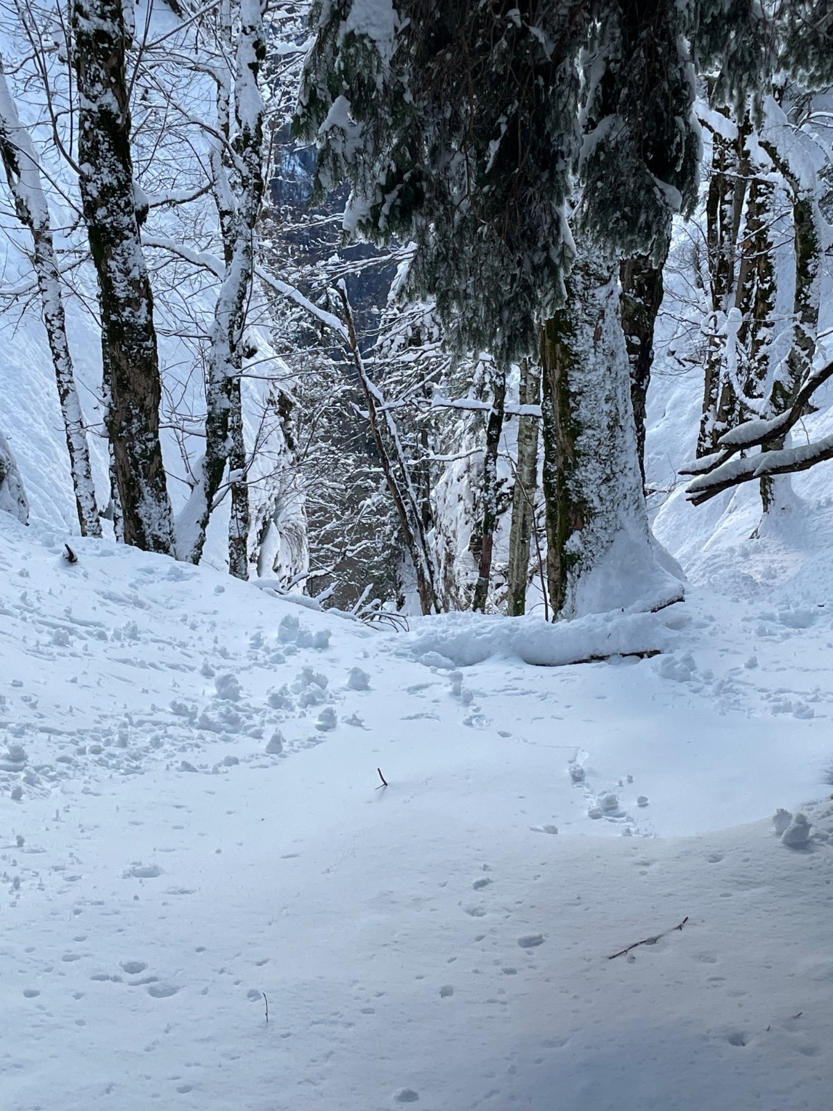 - Départ du couloir bonne poudre à l’abris sous les arbres.