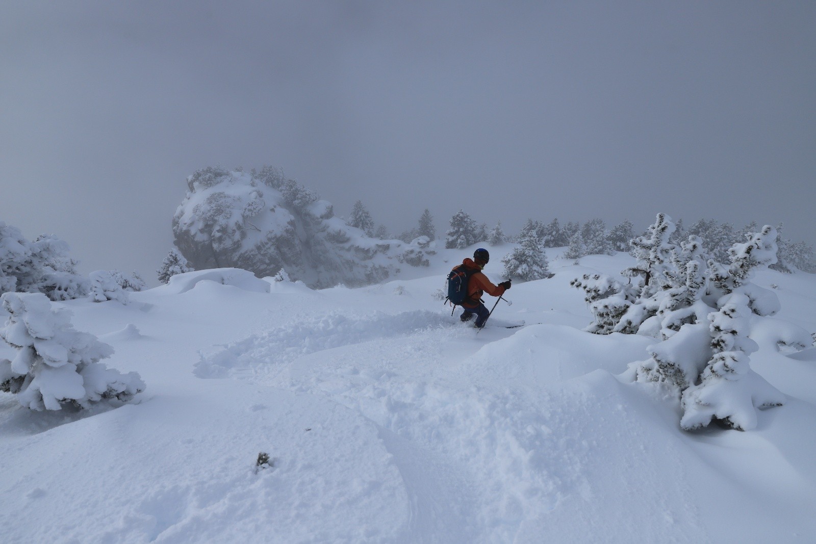 Au-dessus de 1600 m : 30/40 cm de poudre légère. On touche encore les cailloux en dessous, notamment au sommet et dans le canyon