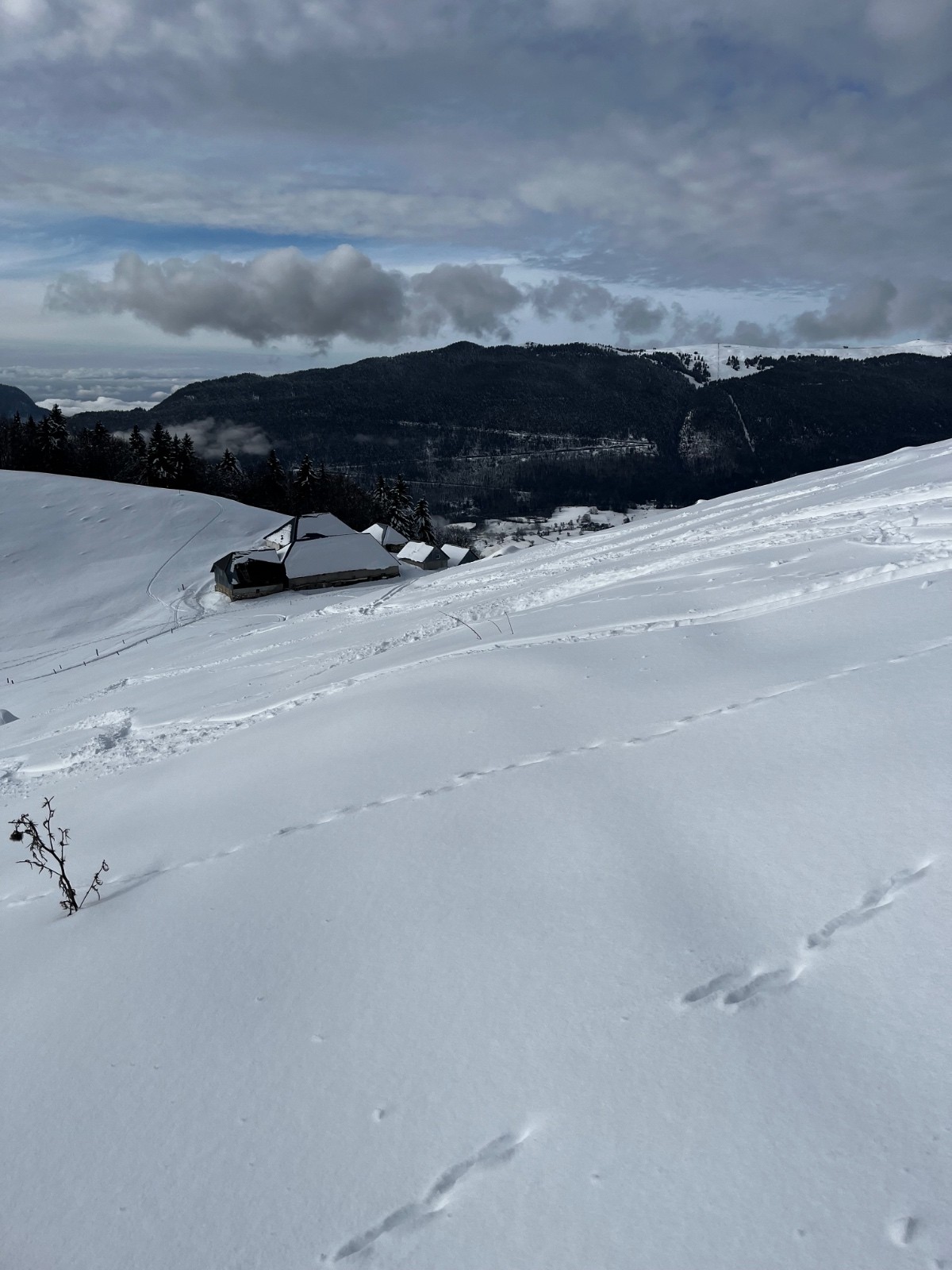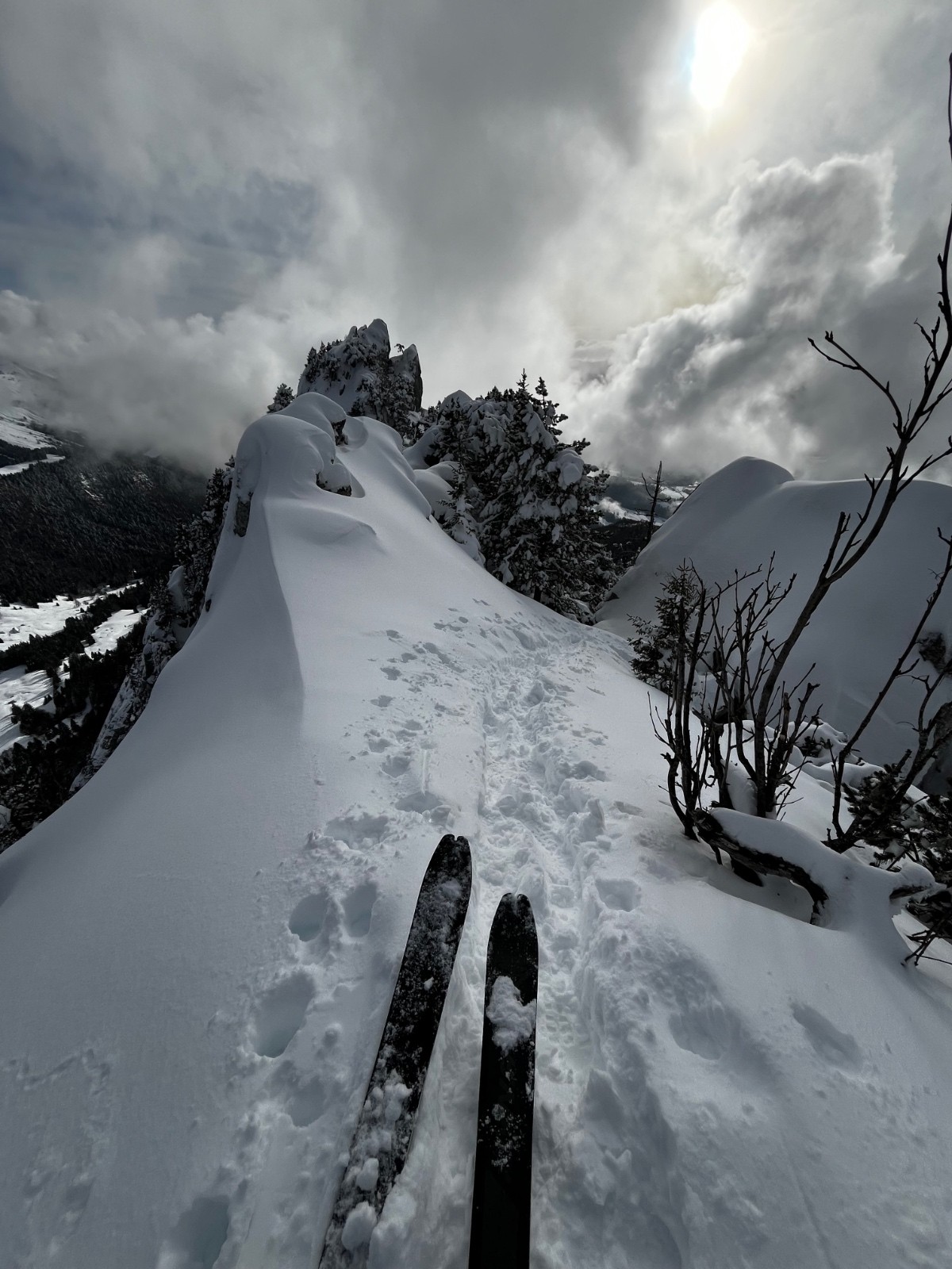 Conditions pour le ski : neige qui transforme. Neige récente qui s’alourdir en haut, neige déjà vraiment transfo en bas.