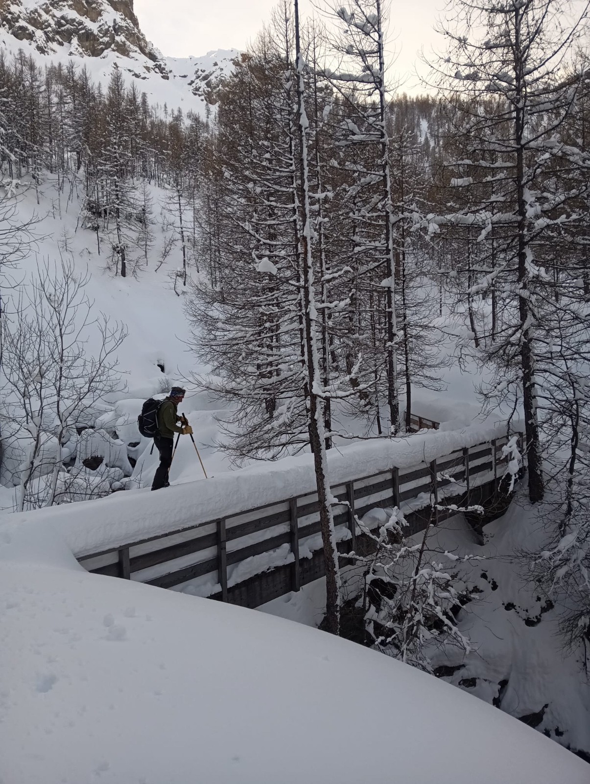 Conditions pour le ski : excellentes neige poudreuse tout au long du parcours un peu croûte par le vent