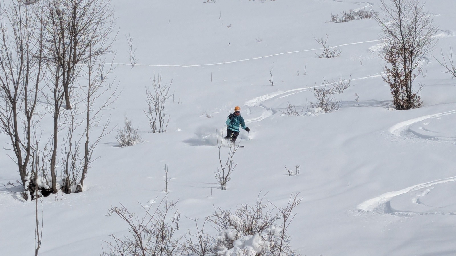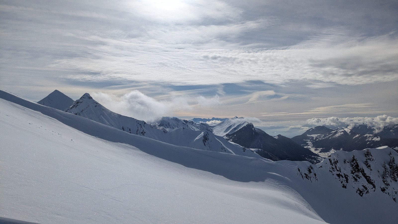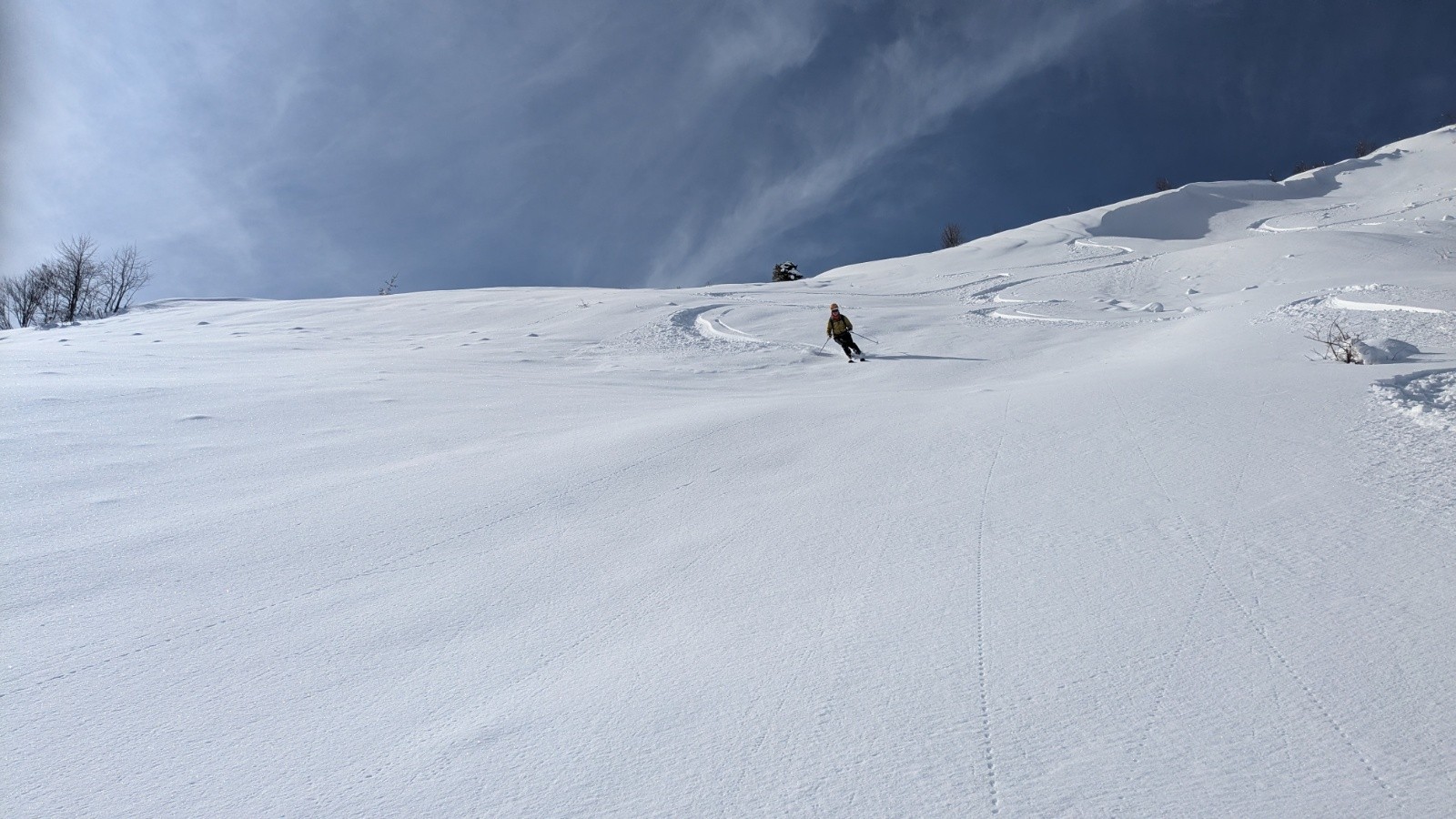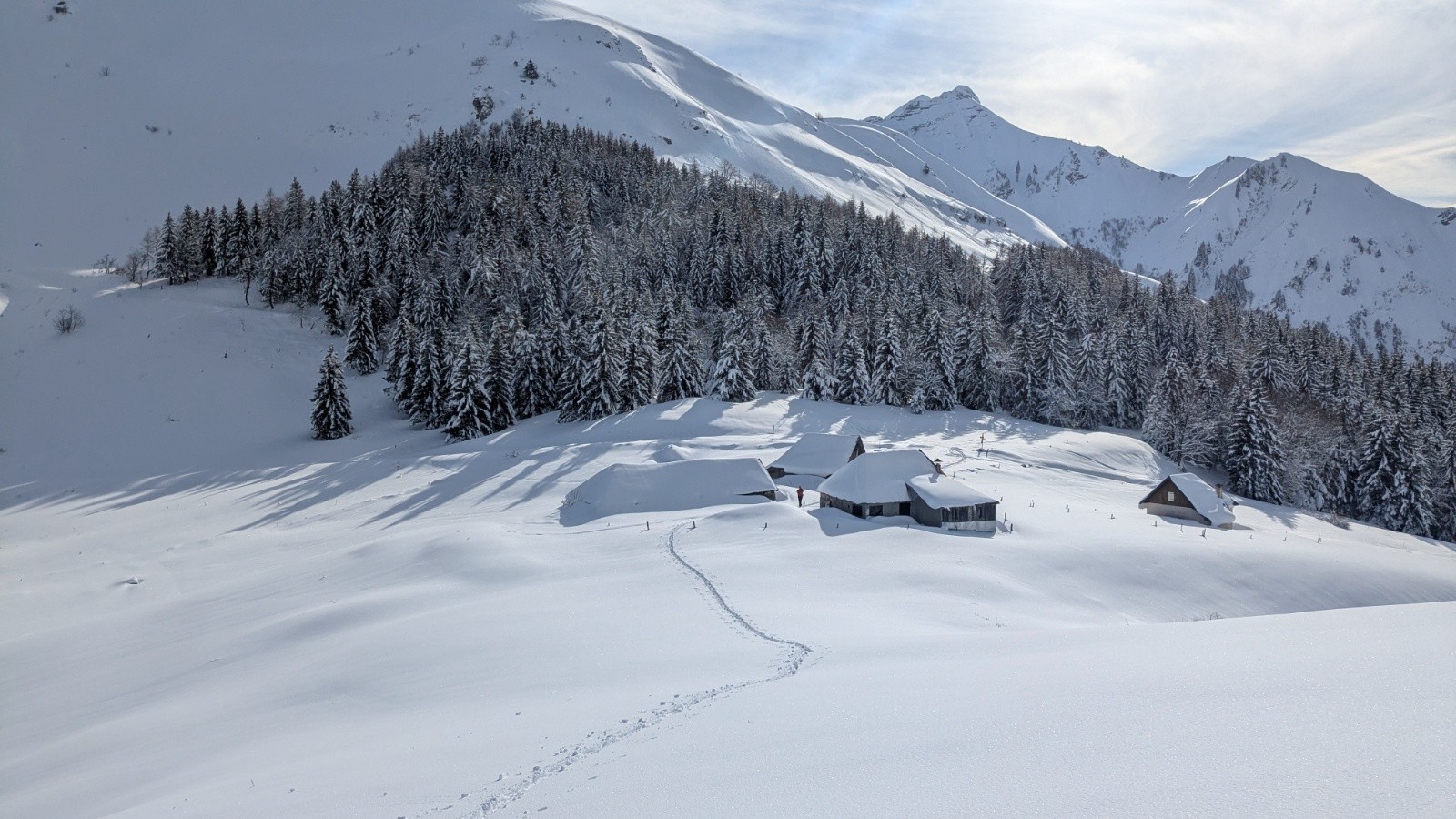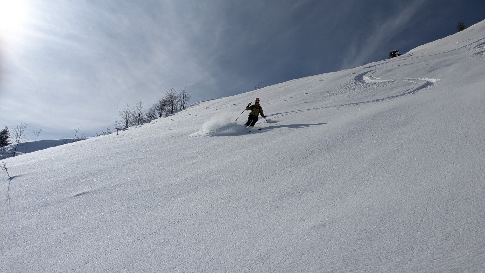 Conditions pour le ski : Juste ce qu'il faut au parking. Peu de neige sous 1300 pusi ça augmente! En gros de 20cm à 40cm de poudreuse un peu dense posé sur un fond humide bien ferme. Sous les croupes , y a pas grand chose. En S ça chauffe, quelques purges. Du bon ski en W, N et même en E ce matin.