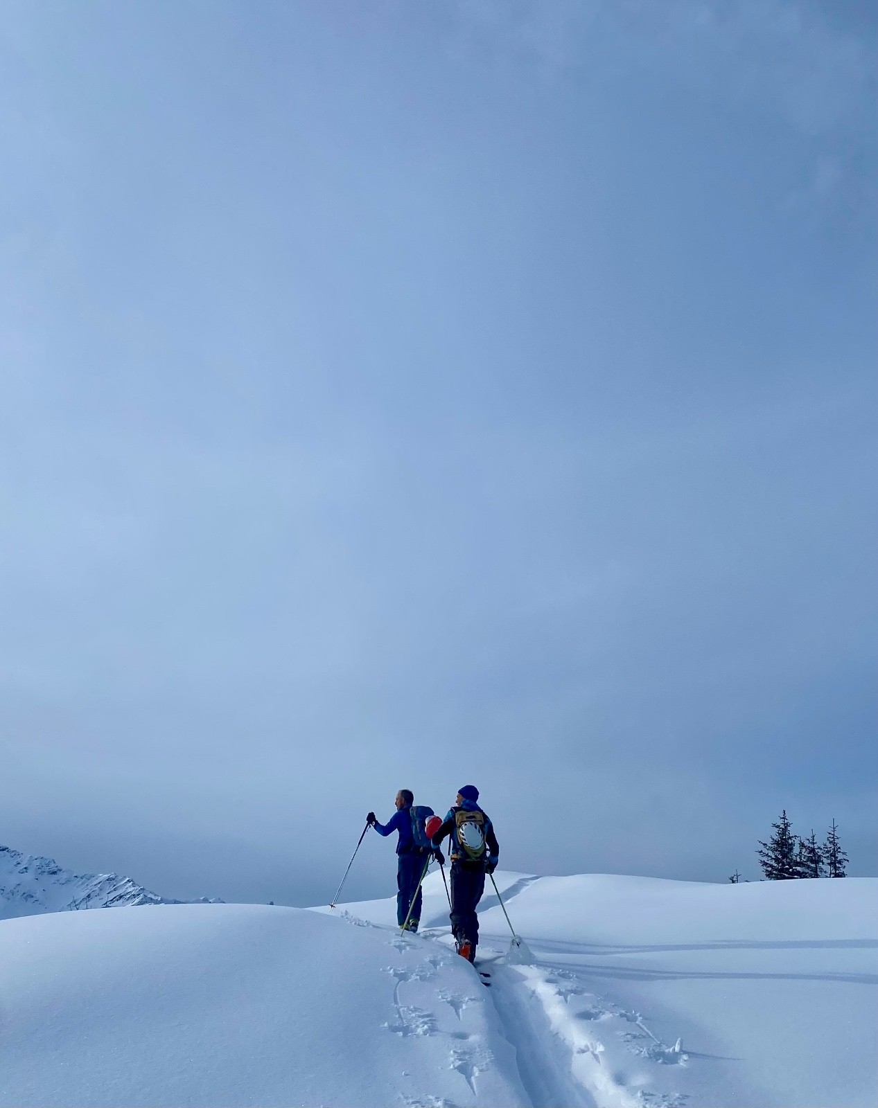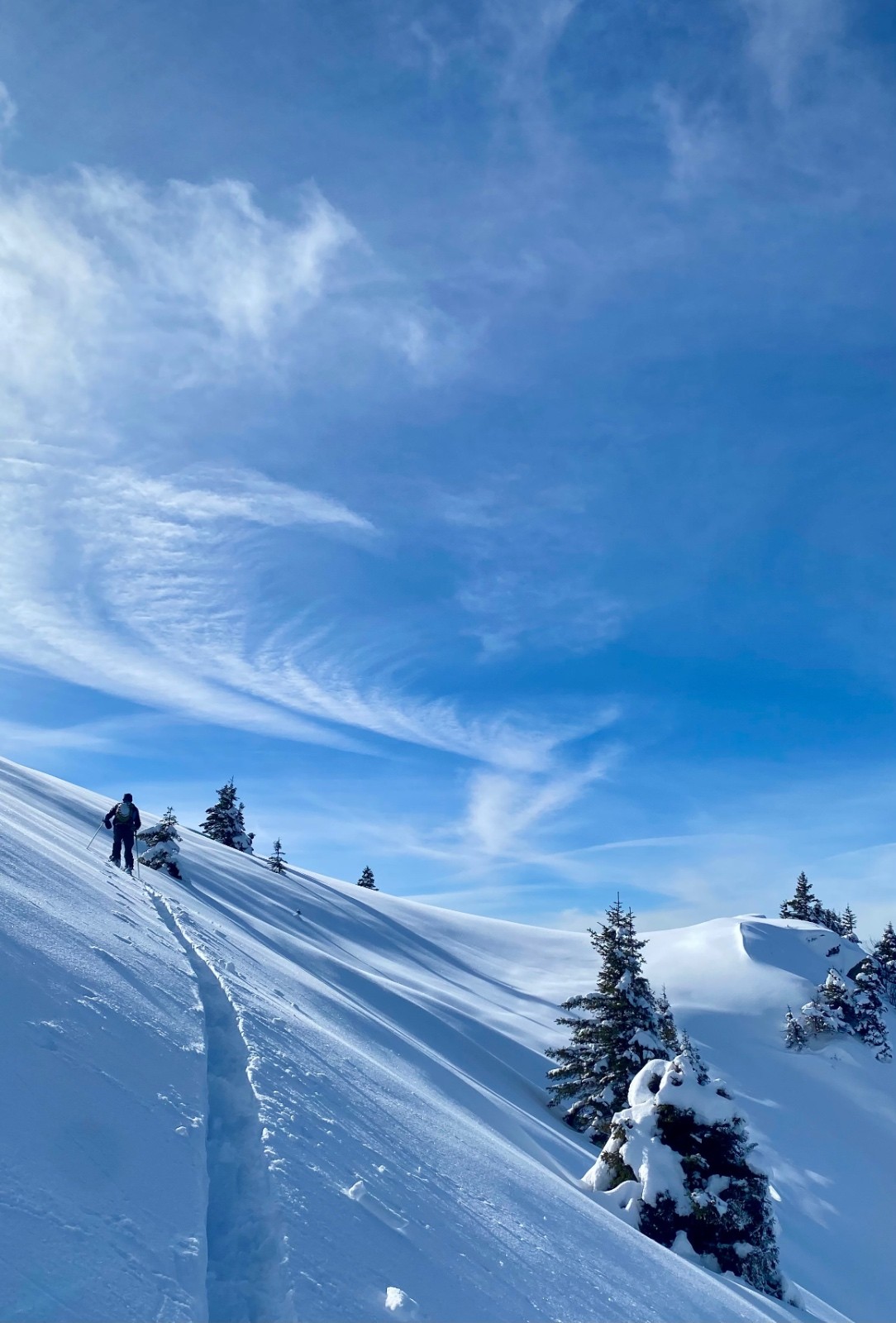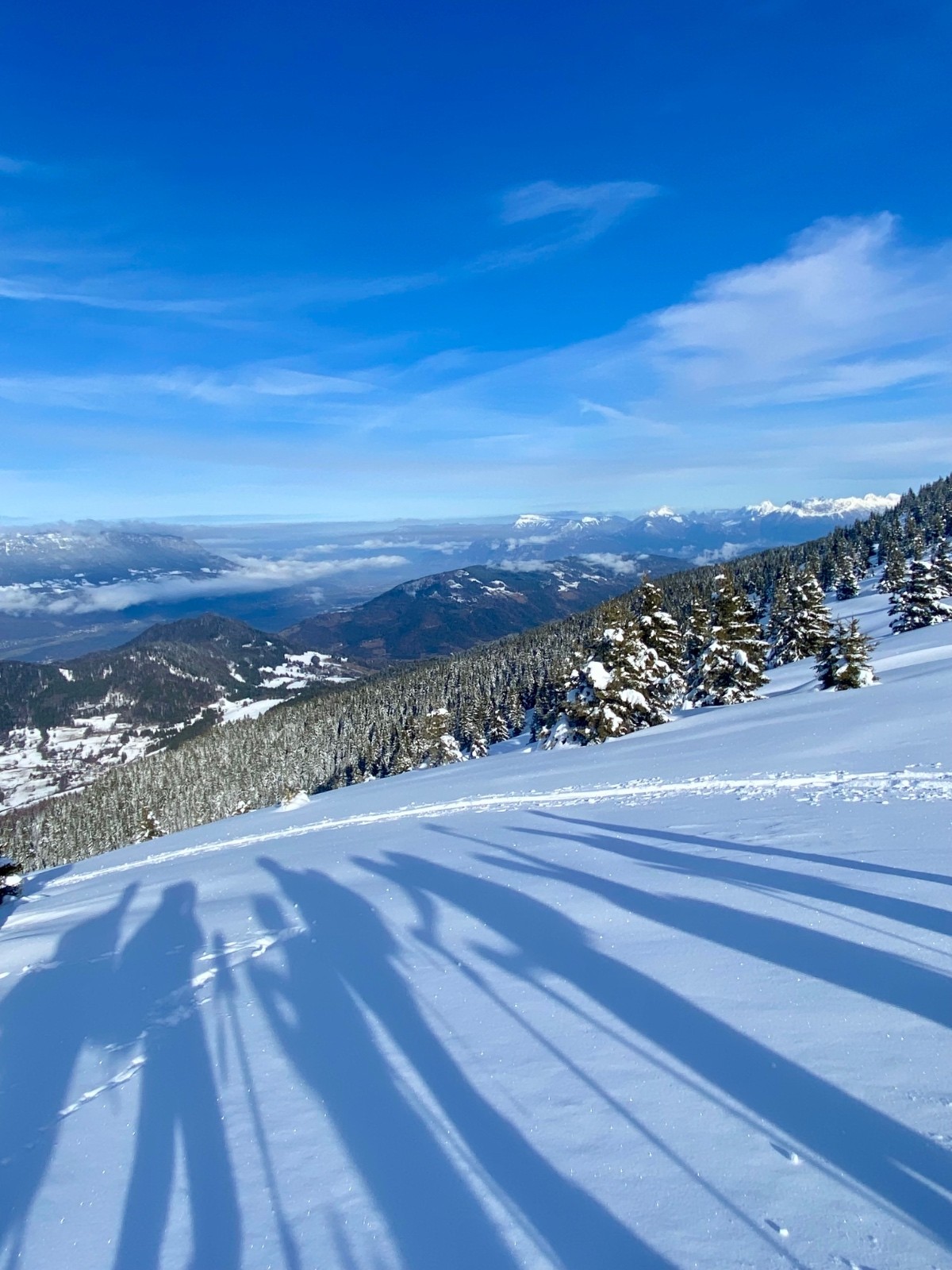 On s’est éloignés de la classique et on a croisé 4 personnes (dont une skieuse ravie de suivre nos traces and cette neige extra)