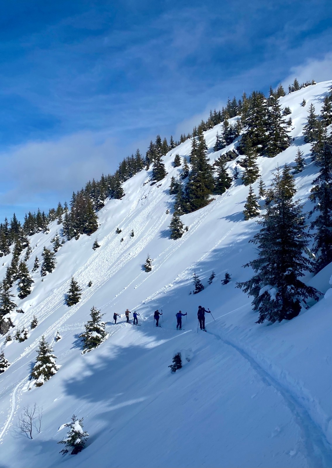 Une bien belle équipe pour cette superbe journée au grand rocher : poudreuse et soleil ☀️