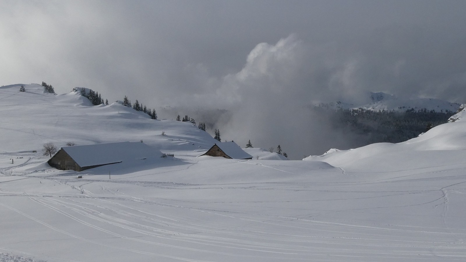 Au niveau de l’alpage, je ne me demandai même pas si j’aurai assez de visibilité pour arriver au sommet. J’y allai tout simplement. Et c’est là que je rencontrai mes amis, que nous nous félicitâmes de notre riche idée de venir ici même si la neige avait déjà subi un peu trop d’outrages.