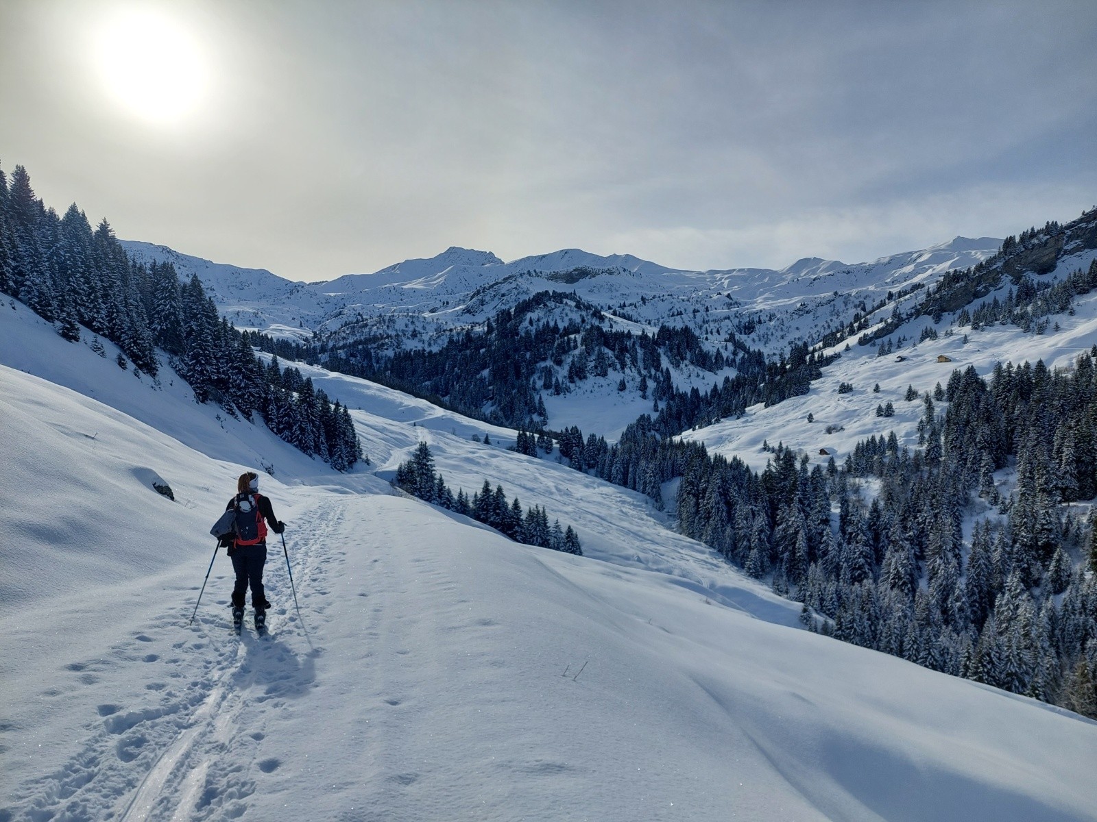 Conditions pour le ski : excellente neige poudreuse tout le long. Mais ça chauffe vite au soleil