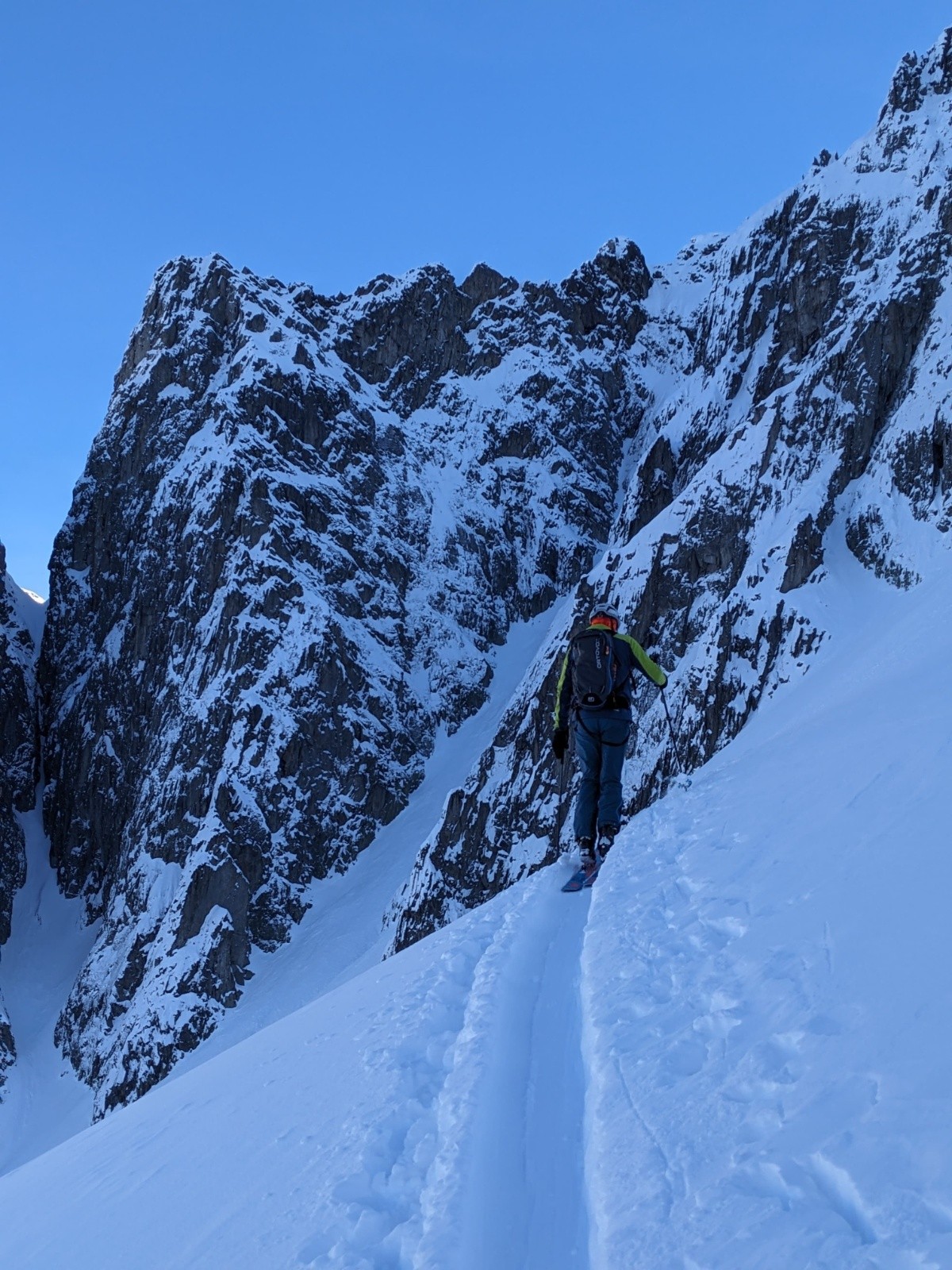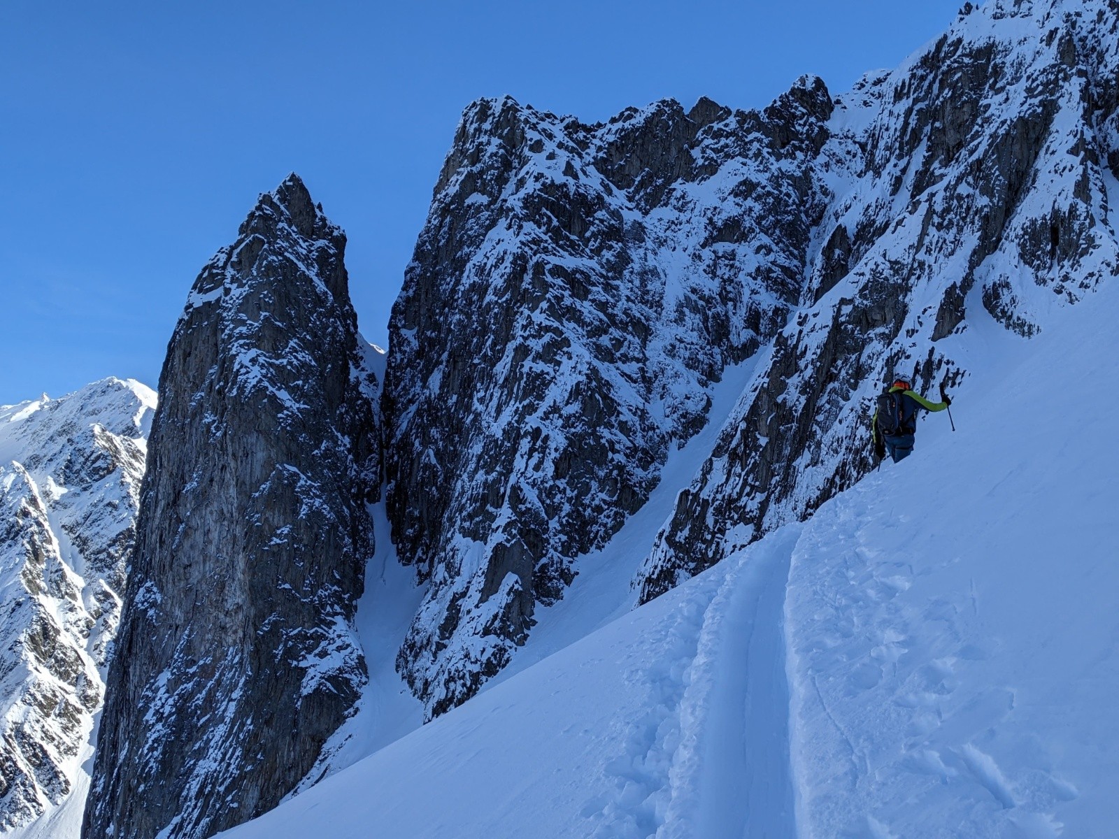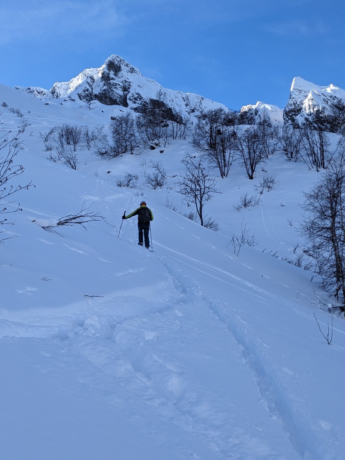 Conditions pour le ski : Excellente, poudre froide un tout petit peu lourde mais qui va bien quand même.
