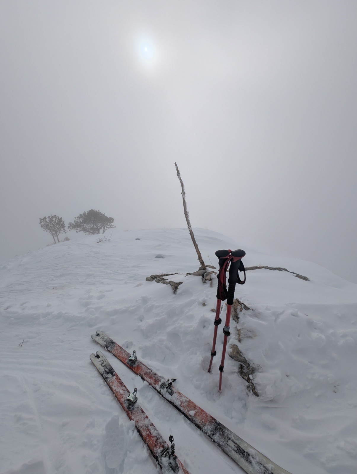 Conditions nivo et activité avalancheuse : RAS. En bas pas de sous couche mais le regel nocturne évite les touchette, en haut difficile de savoir... l'arrivée s'est faite dans le nuage.