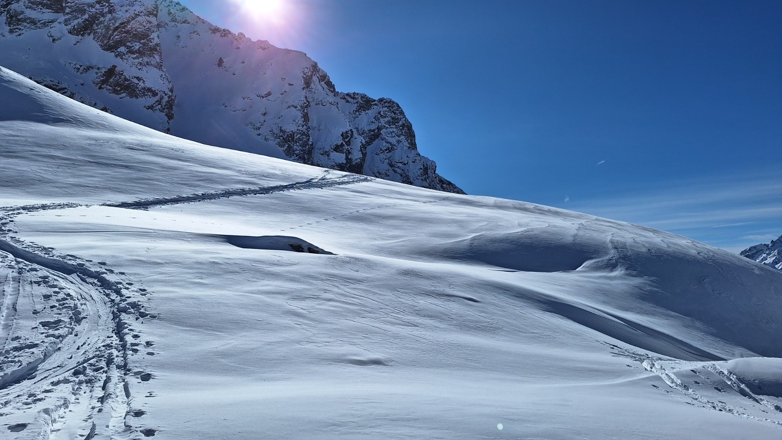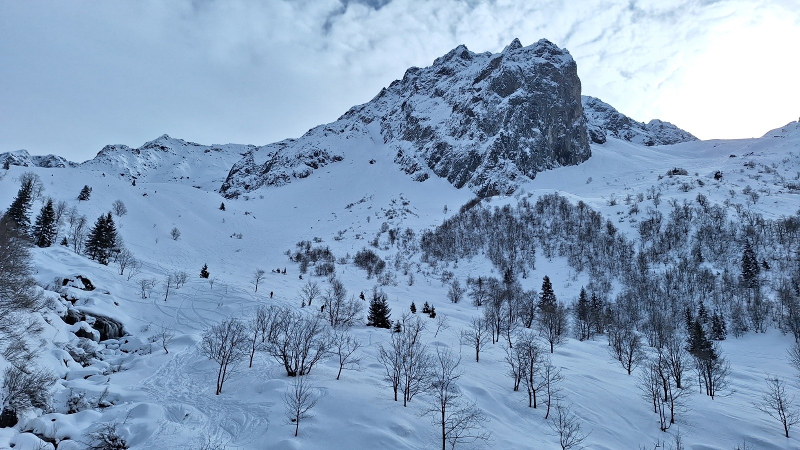 Itinéraire suivi :Martinette - refuge - col de Mouchillon. J'avais hésité à faire la traversée sud - nord. J'aurais dû ! Je me suis bien caillé dans la montée :-) . Pipette gelée et petite fringale (pas trop envie de faire une grosse pause avec les doigts gelés). Le soleil au col fait du bien. De belles traces au col du Rocher Blanc qui a l'air en bonnes conditions.