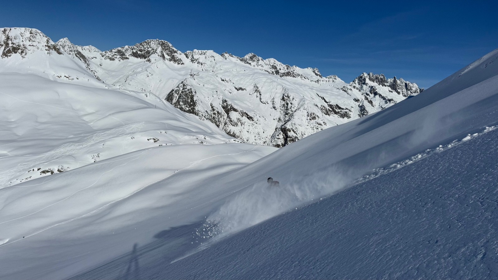 Conditions pour le ski : poudre, et poudre sur la face. Le reste en neige transfo lourde sur le bas pour rejoindre la voiture. Pas pire. Le total vraiment super bon !