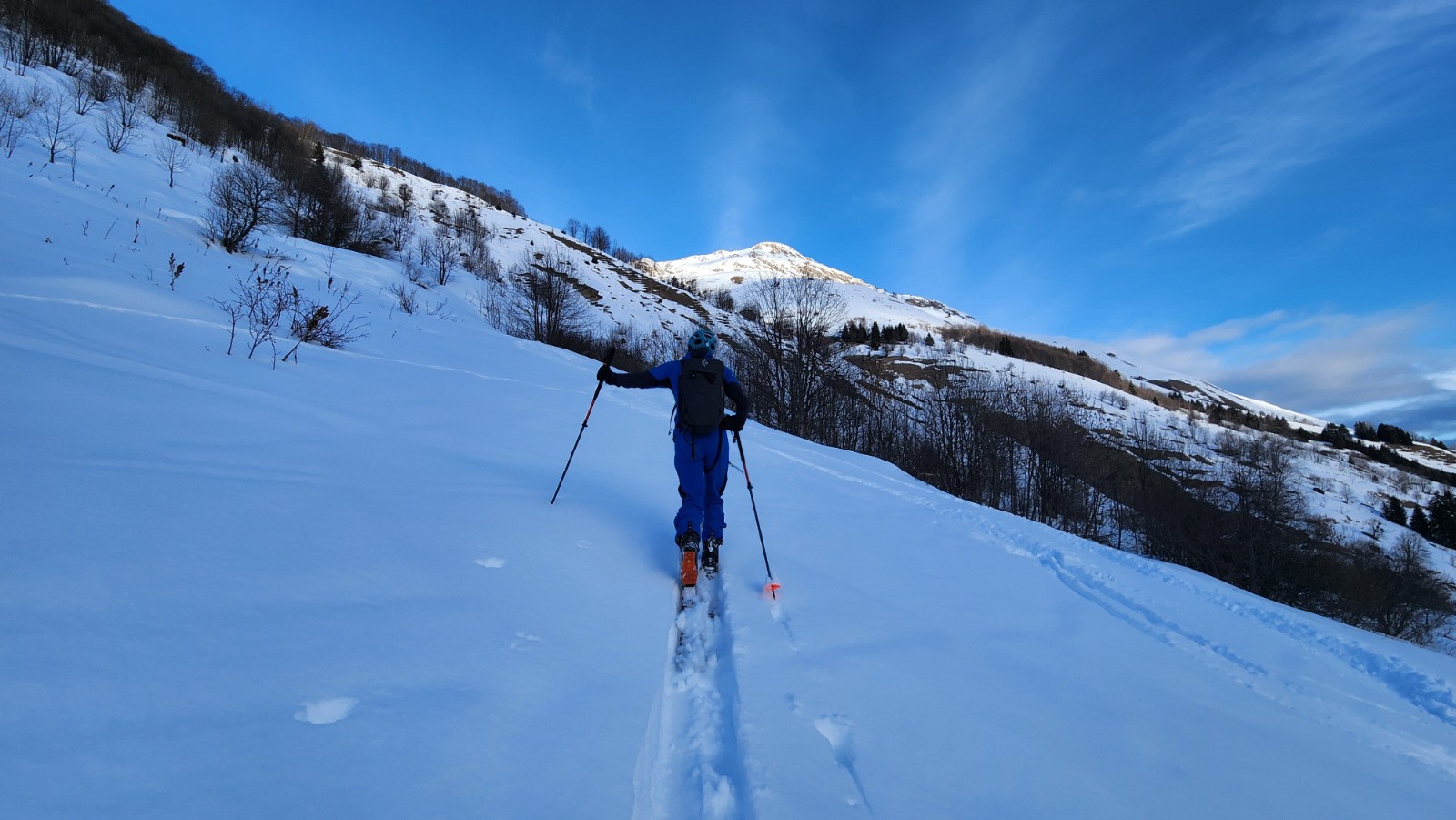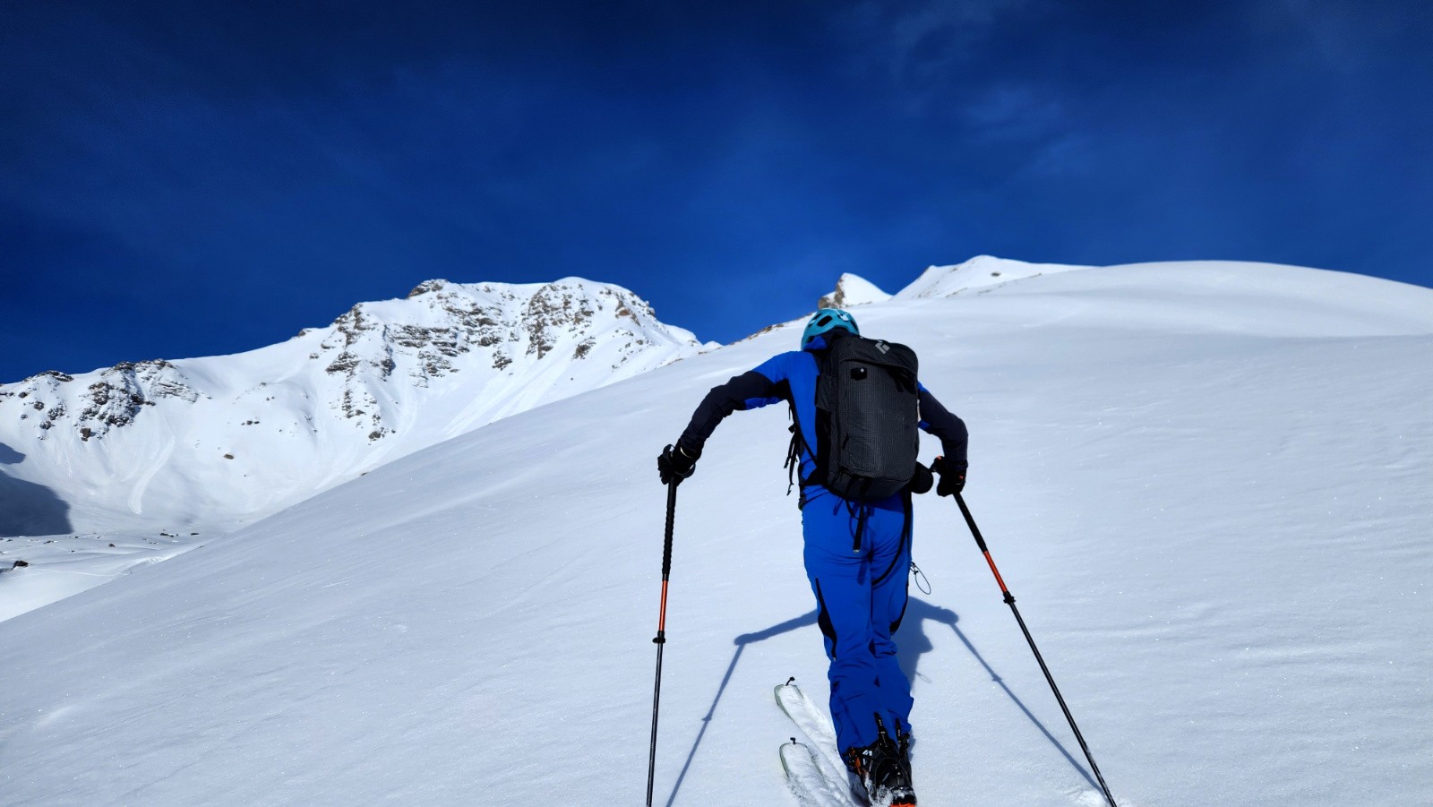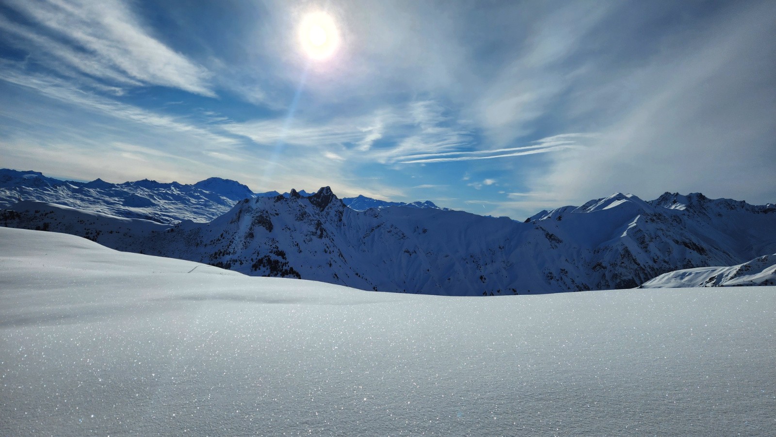 Conditions pour le ski : De la poudre en majorité légère, une petite bosse au soleil en poudre plus lourde.