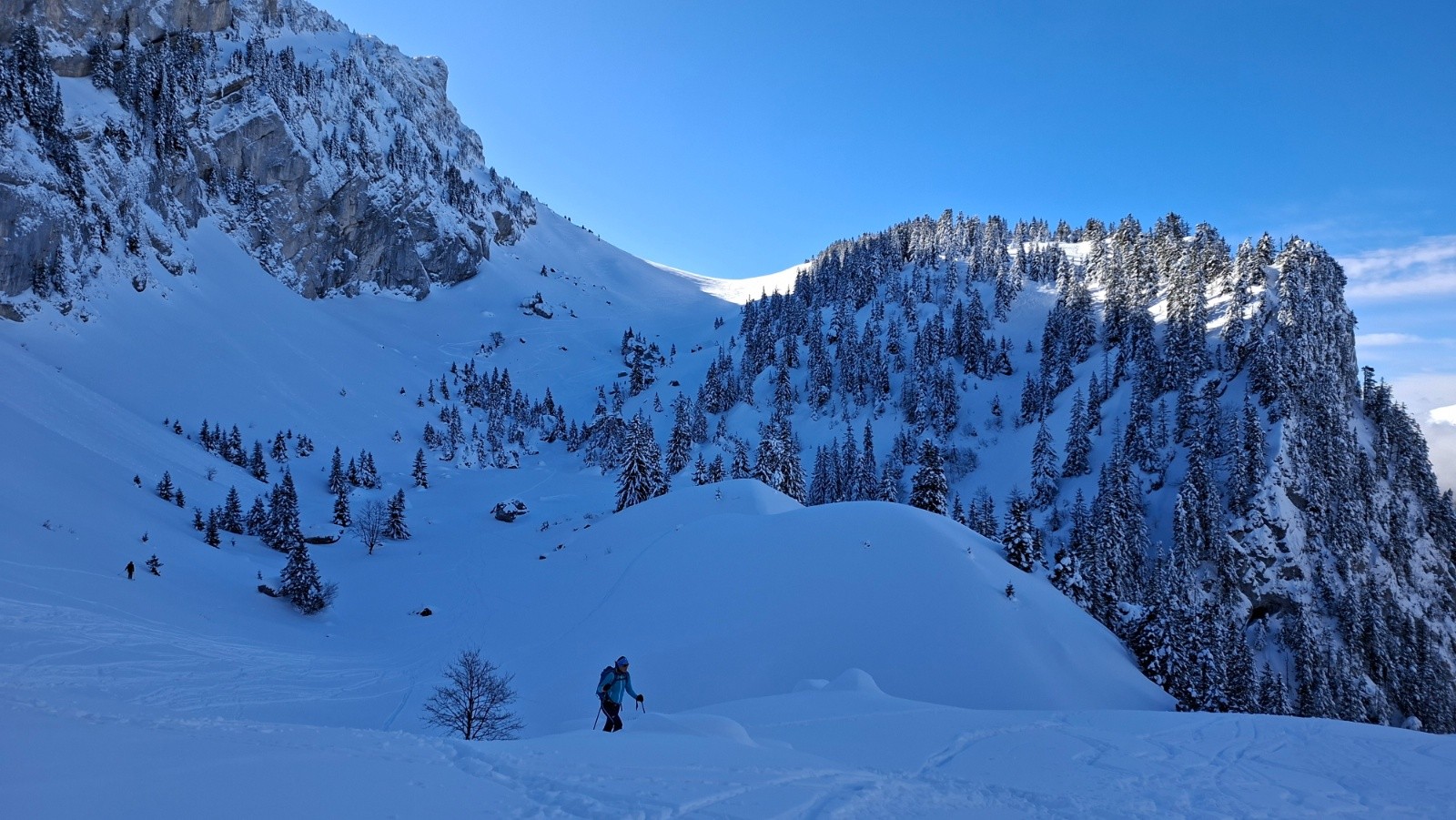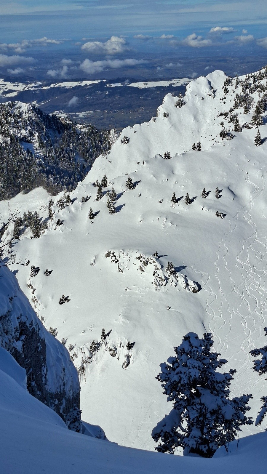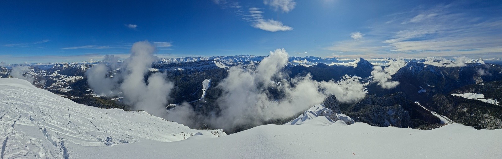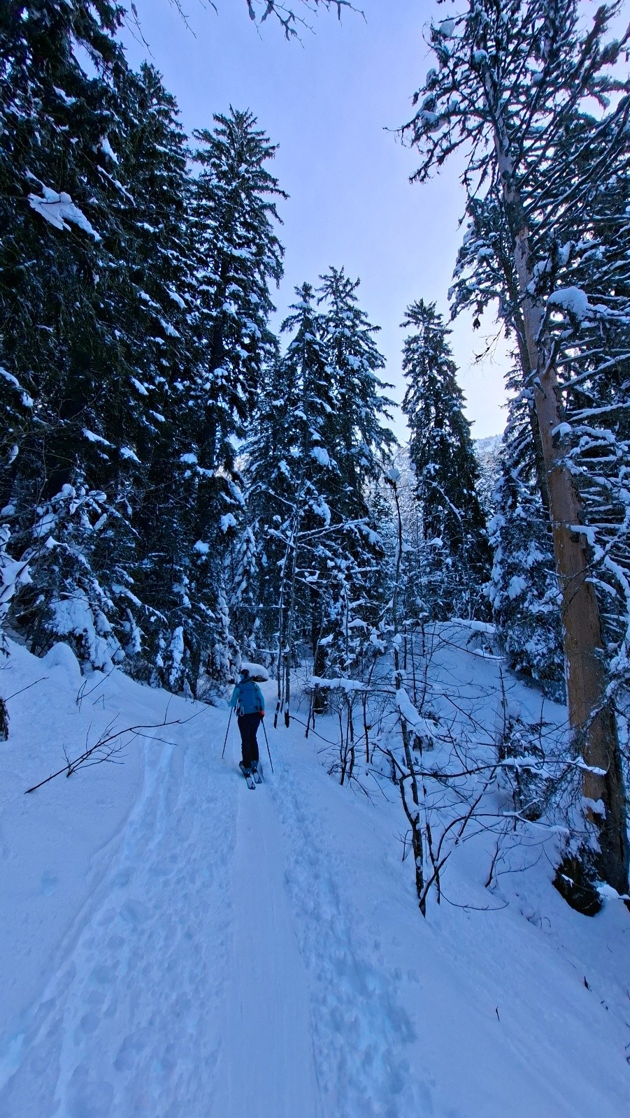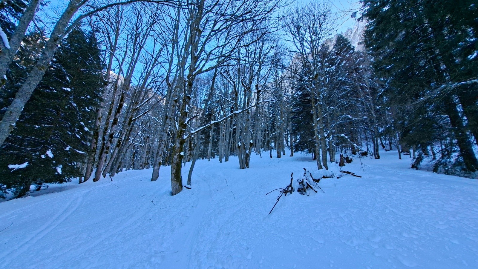 Conditions pour le ski : Bon, voire très bon au-dessus du Habert de Bovinant (resté froid), en dessous c'est un peu le combat dans la croûte et la forêt.