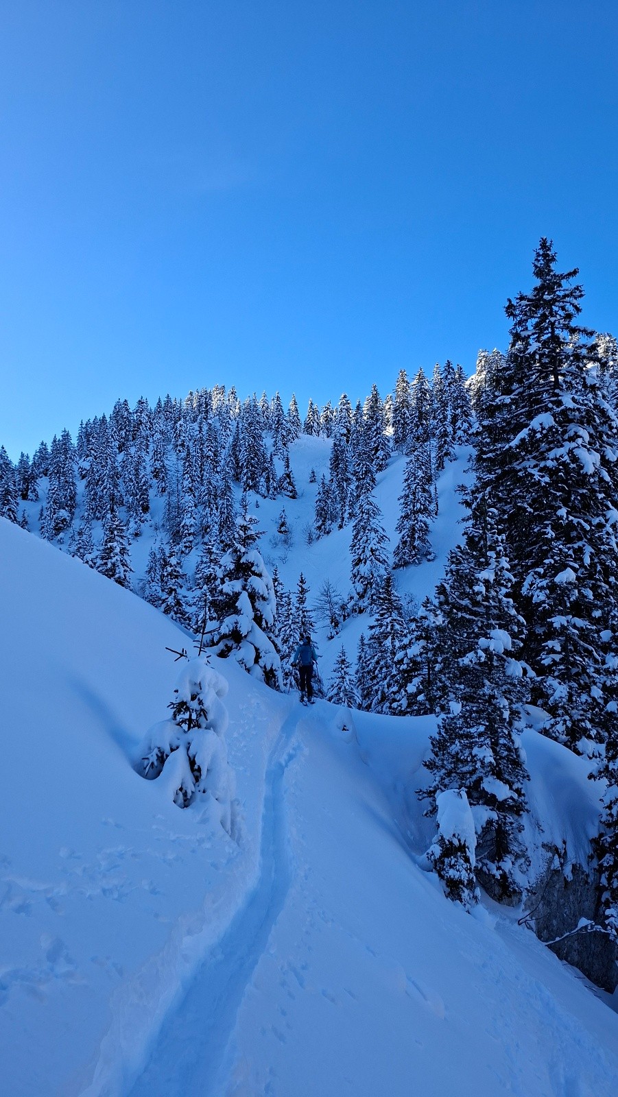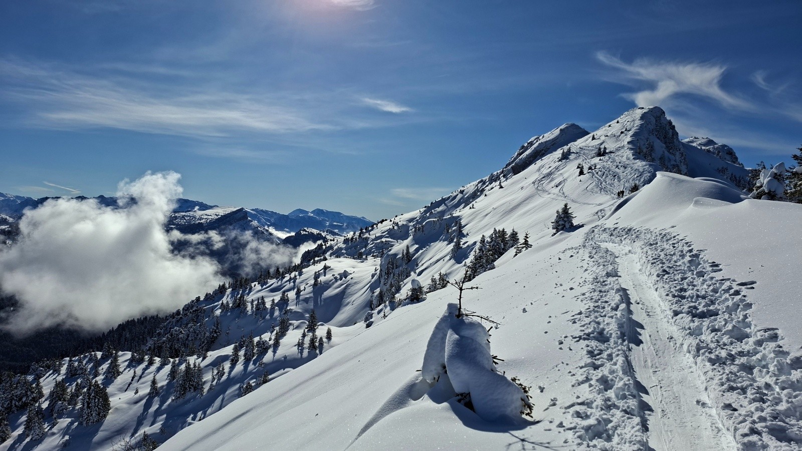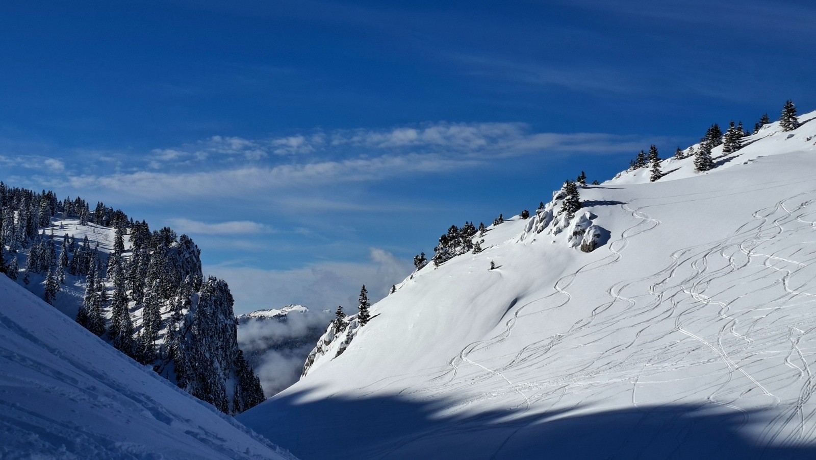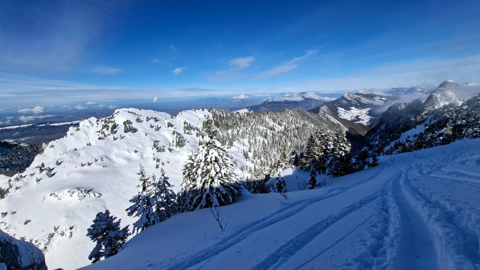 Conditions pour le ski : Bon, voire très bon au-dessus du Habert de Bovinant (resté froid), en dessous c'est un peu le combat dans la croûte et la forêt.